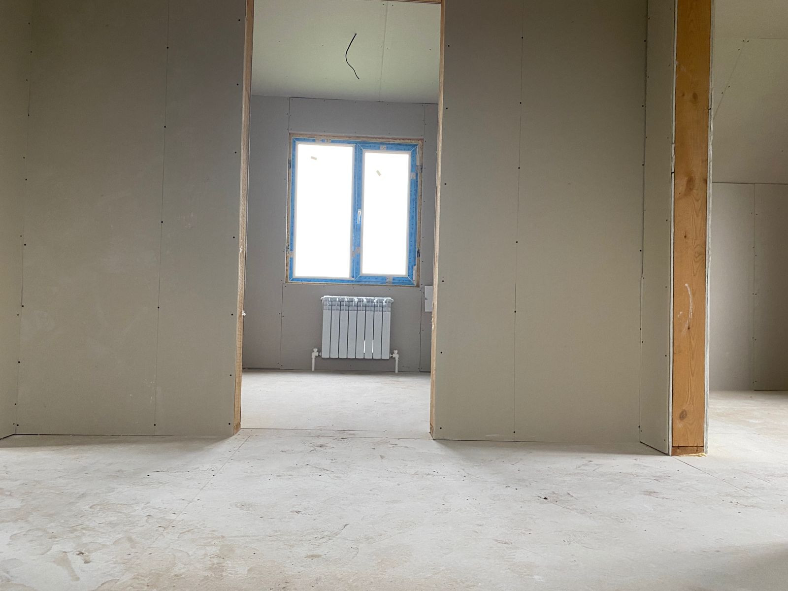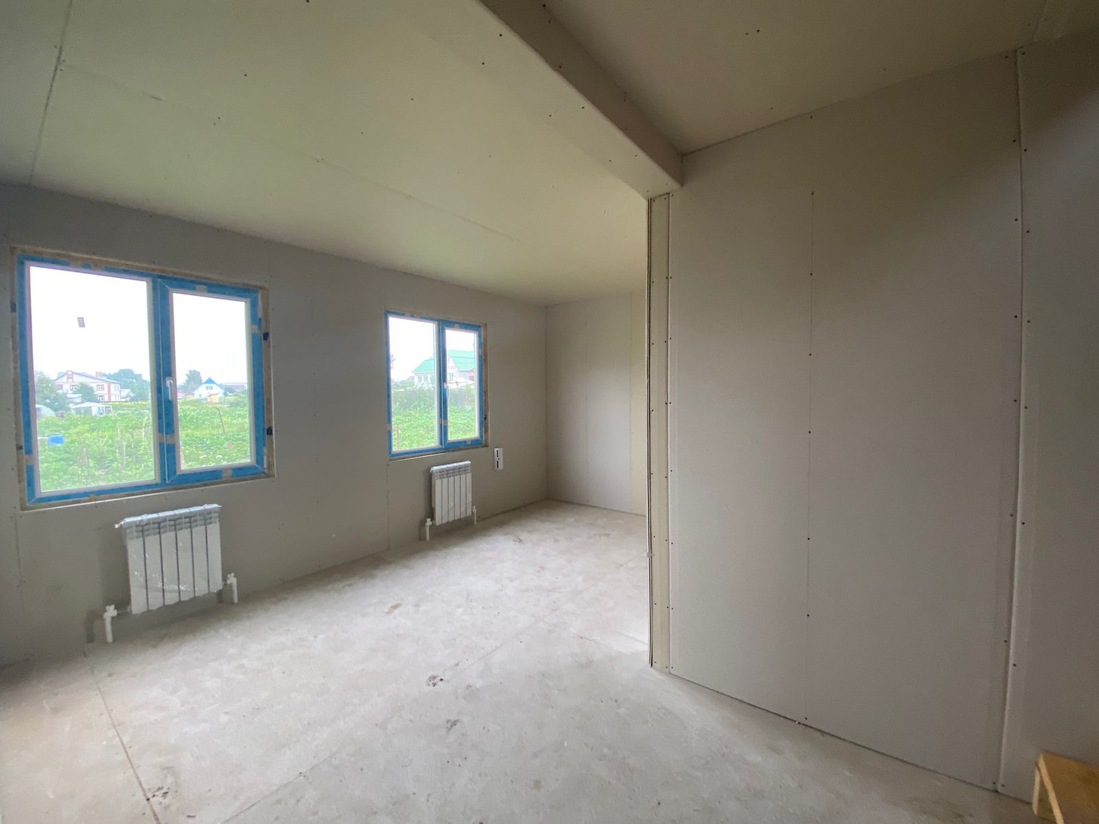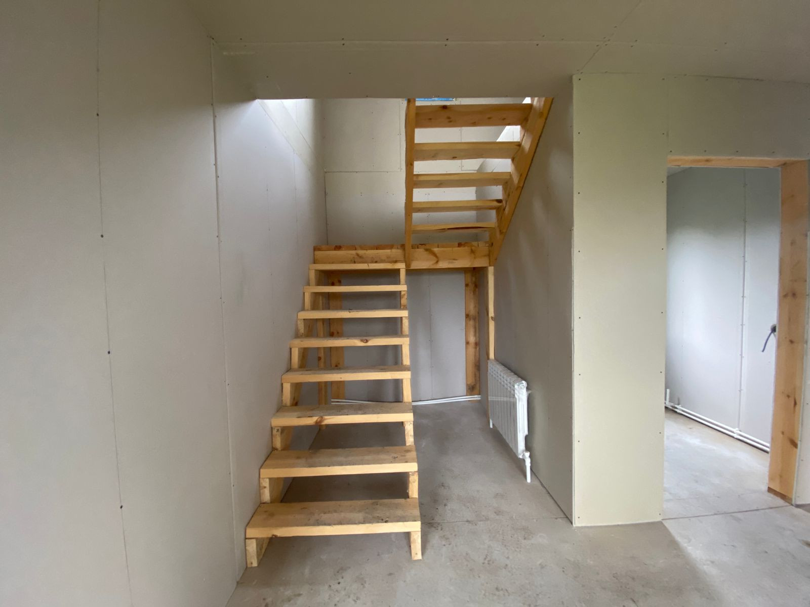 В доме полноценные два этажа: на первом этаже прихожая, кухня-гостинная, санузел, лестница. На втором этаже две спальни, можно сделать еще один санузел/комнату/гардеробную.