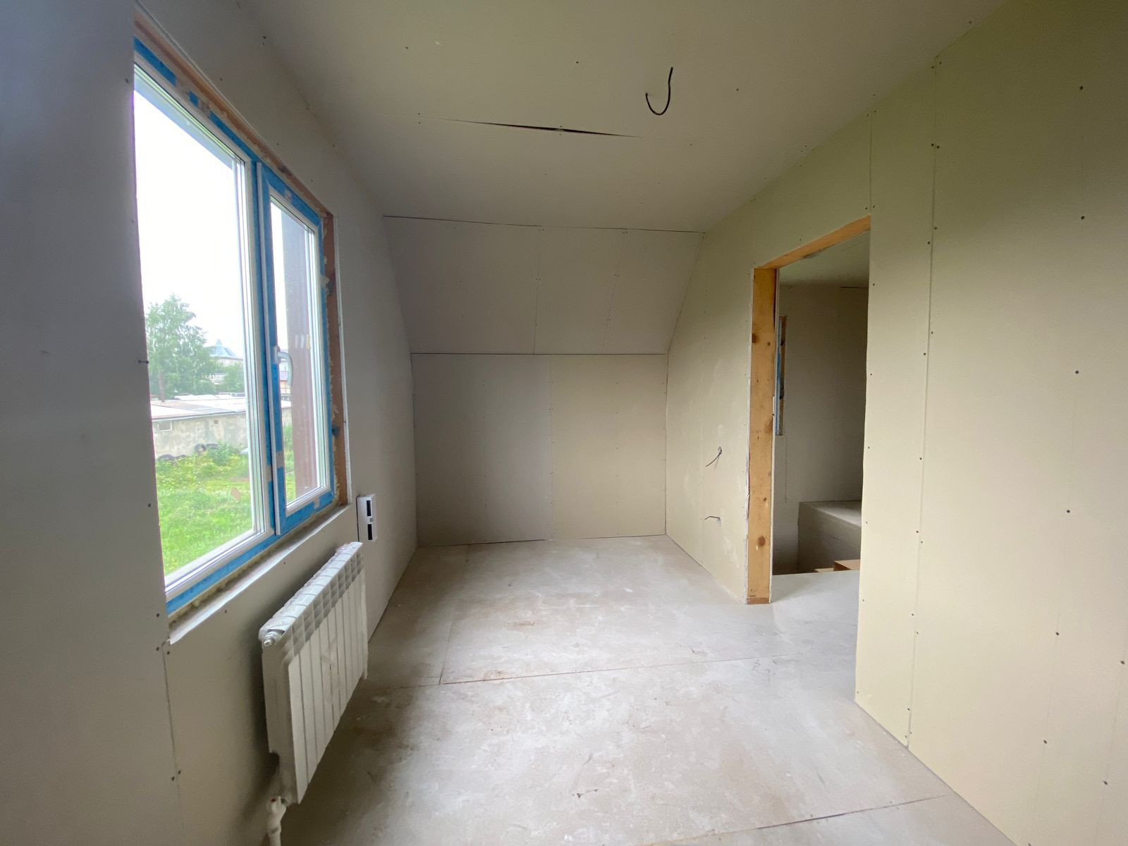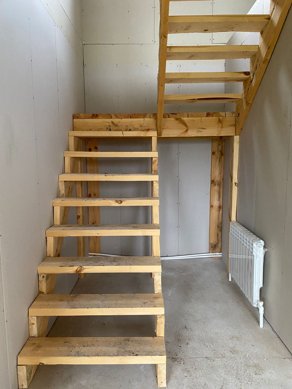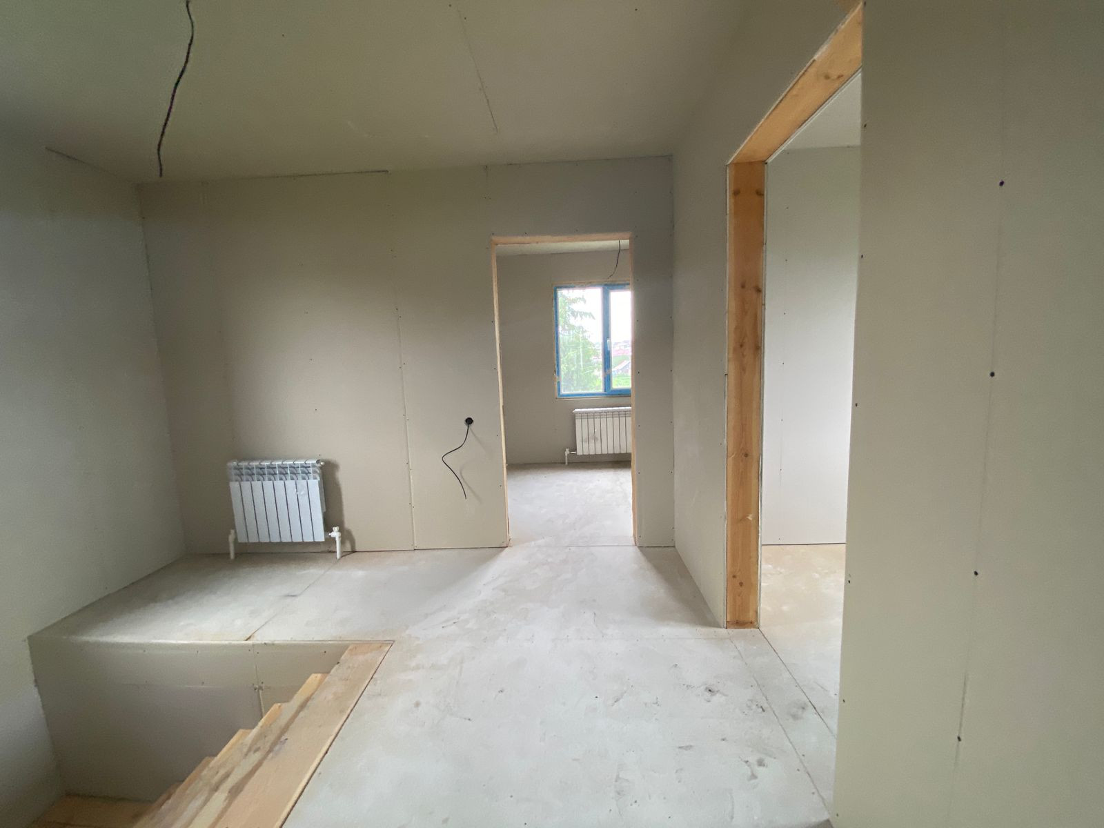 В доме полноценные два этажа: на первом этаже прихожая, кухня-гостинная, санузел, лестница. На втором этаже две спальни, можно сделать еще один санузел/комнату/гардеробную.
