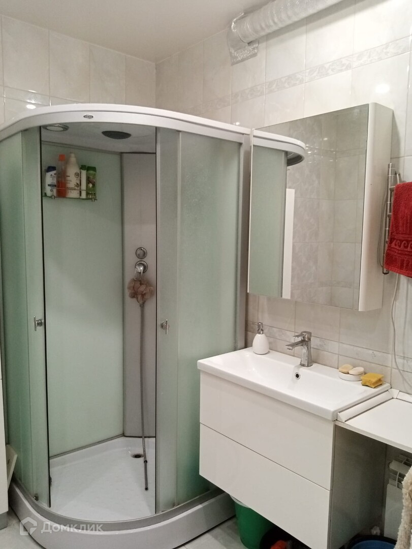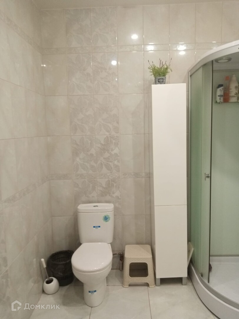 просторный санузел отделан кафелем.