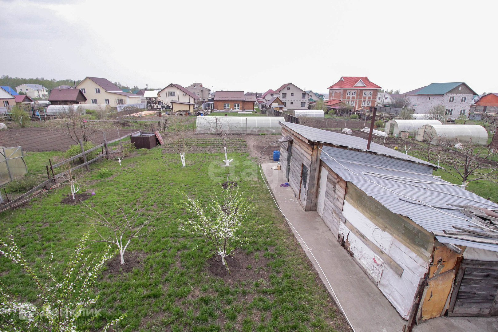 На участке есть баня, сарайки. Плодоносящий сад: яблоня 5 шт, груша 1 шт, слива 2 шт, вишня 2 шт, малина, виноград разных сортов, абрикос, клубника, смородина.
