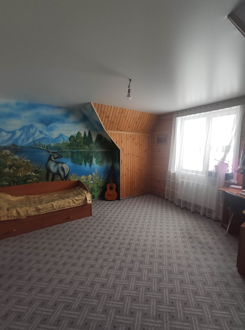 Продам дом в п. Октябрьский. Дом продатся с мебелью, бытовой техникой, шторами и тд. Тихое, красивое место с видом на берзовую рощу. Земельный участок 5 соток. Газон, без посадок (только две молодых жимолости и две вишни).Дом из бруса, очень тёплый. Два этажа и цокольный этаж. В цокольном этаже расположен гараж с электро-воротами с промышленным приводом, большой погреб и отапливаемое помещение разделённое на две комнаты. На первом этаже большая кухня-гостиная, гостевая комната,сан.узел.По первому этажу проведён тёплый пол. На втором этаже три спальни и сан.узел. На улице есть освещение, дорога отсыпана асфальтной крошкой. В посёлке есть все магазины, аптека, пекарня, спортивный зал и т.д. Ходит школьный автобус.