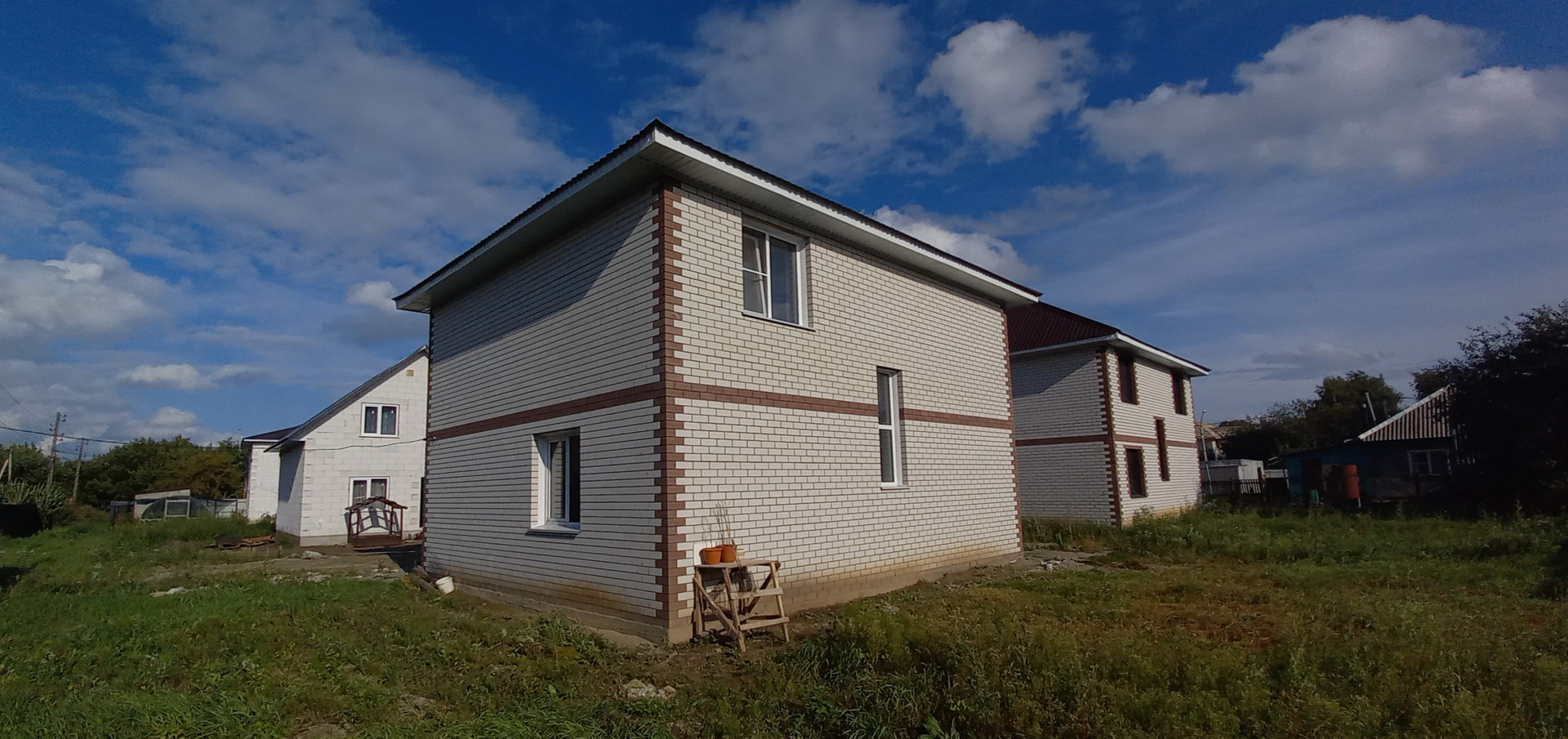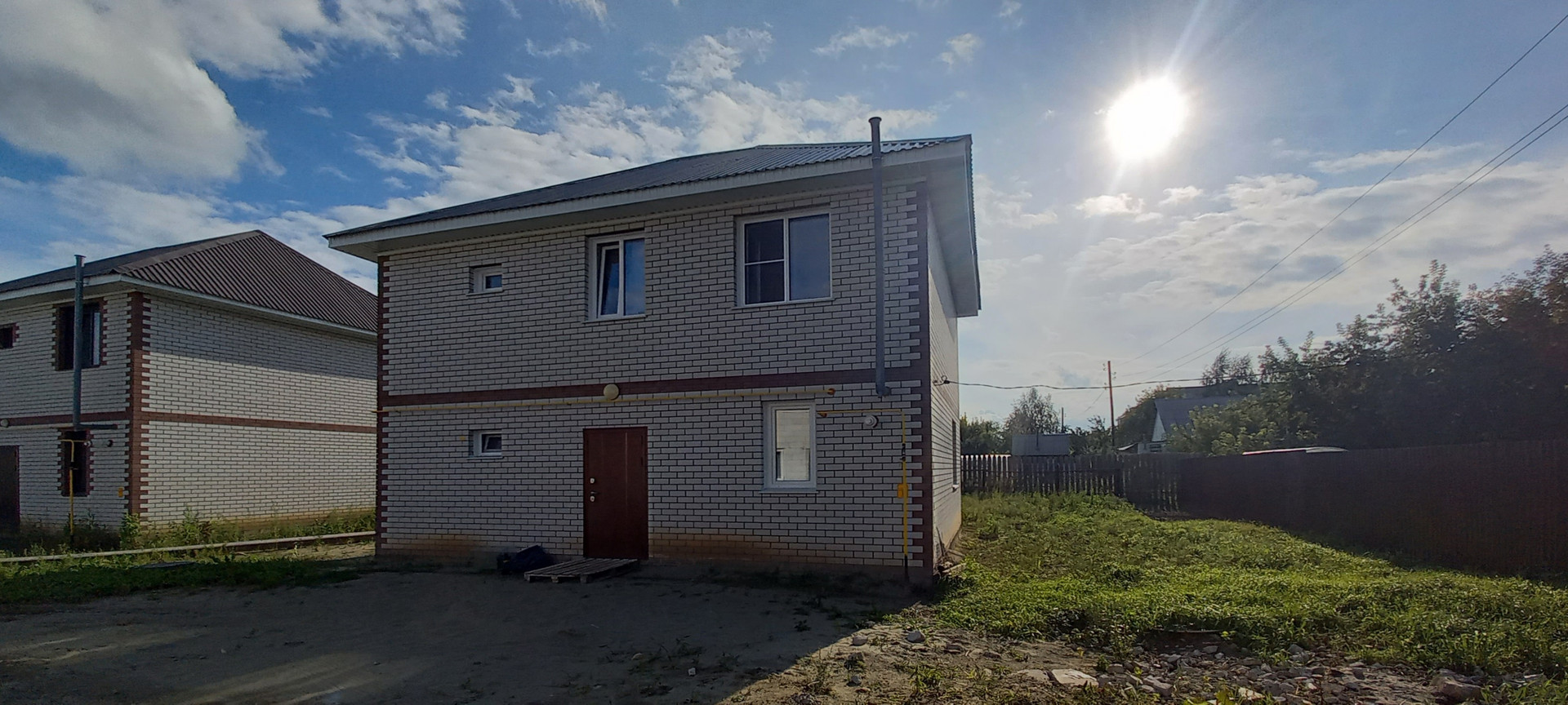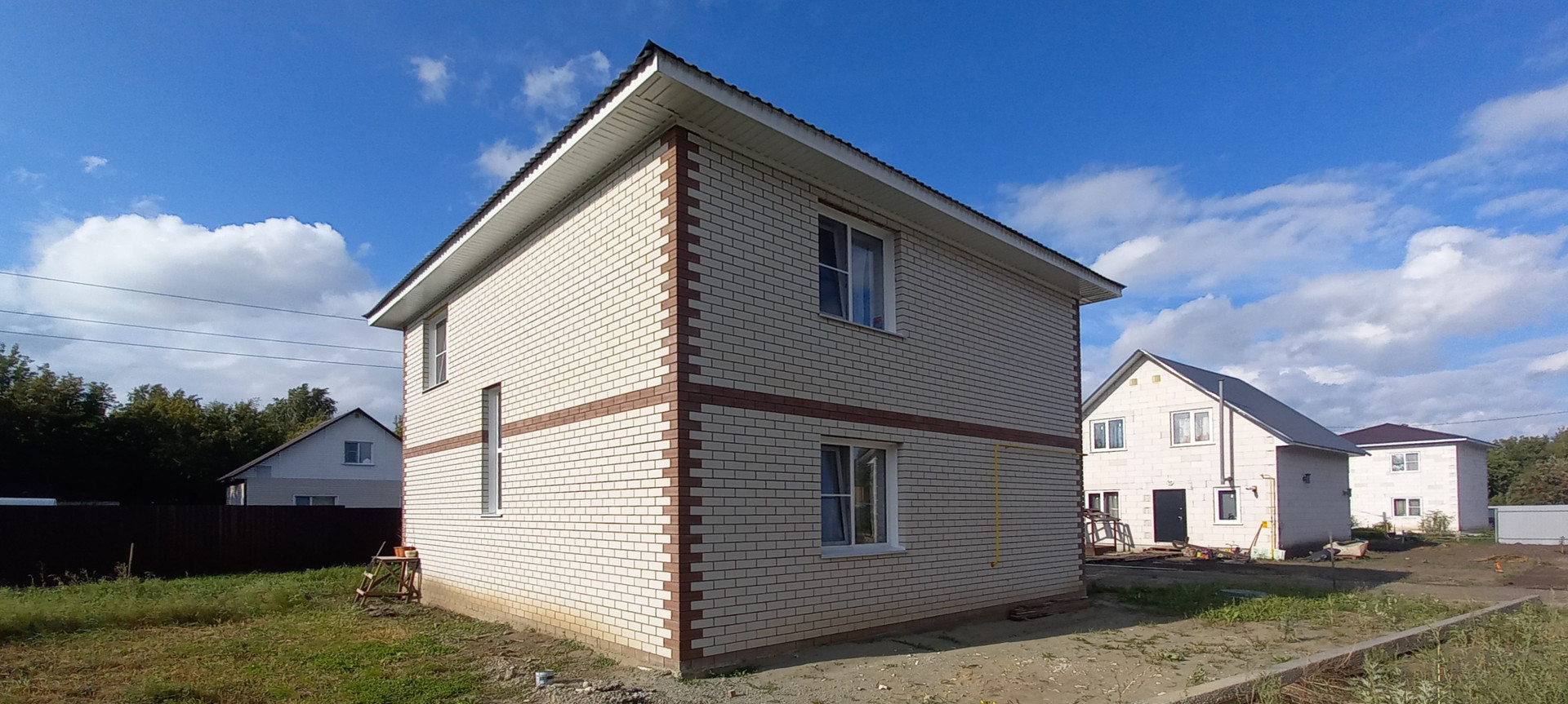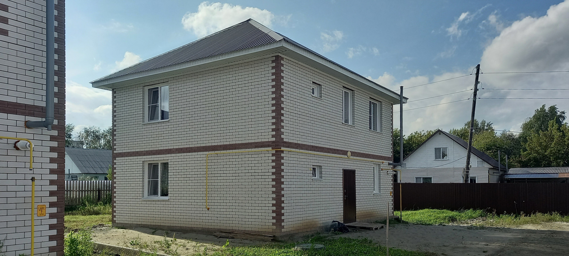 Продаётся новый дом от собственника. Материал стен  кирпич. Полноценных два этажа и высокий чердак (можно ещё увеличить площадь). На первом этаже : гостевой сан.узел, коридор, кухня, гостевая комната. На втором этаже : сан.узел, три спальни. Лестничный марш бетонный. Без внутренней отделки. Отопление газовое. На первом этаже тёплые полы. Вода центральная. Канализация септик. Участок правильной формы с широким фасадом, площадью 4 сотки.