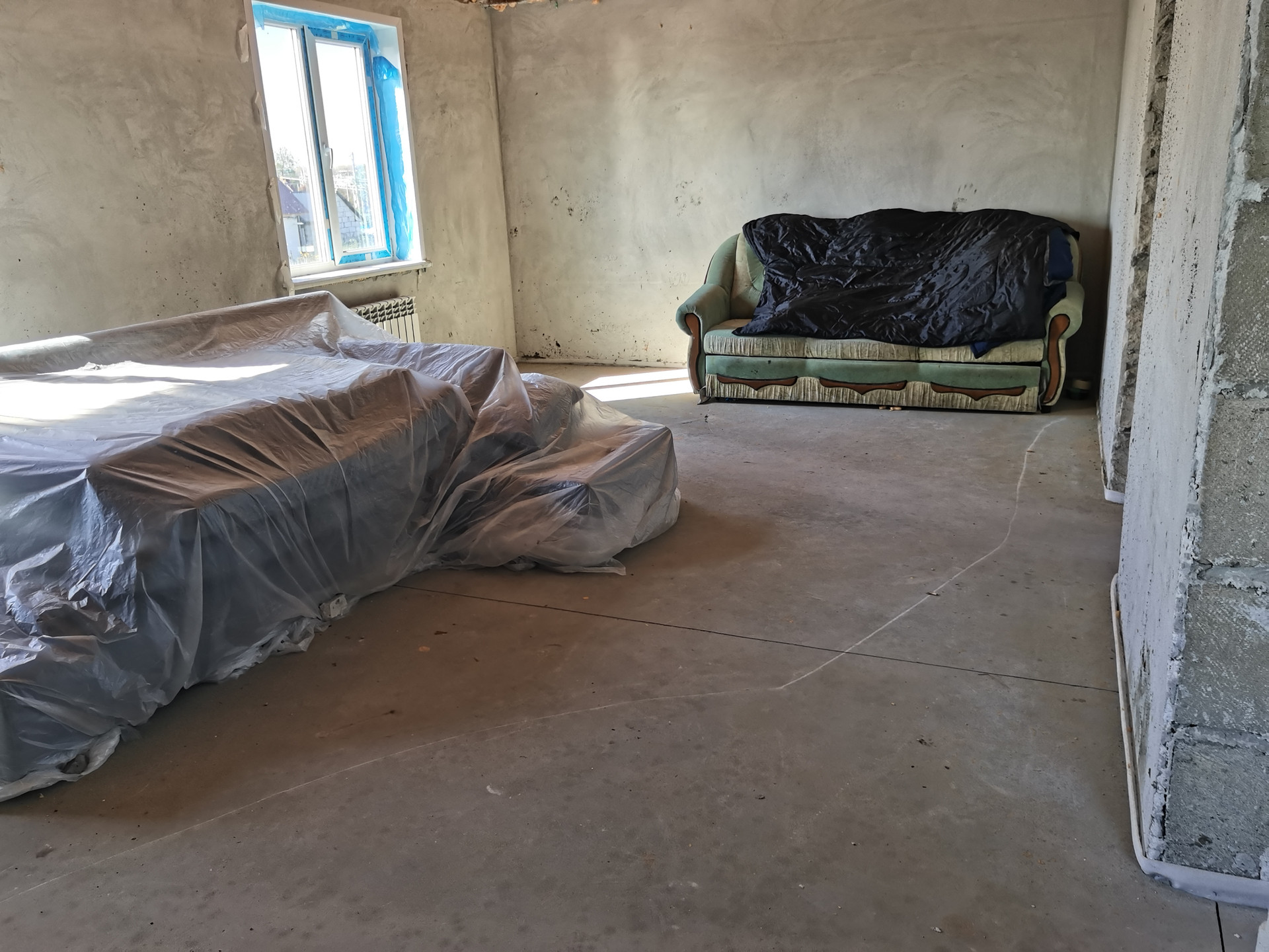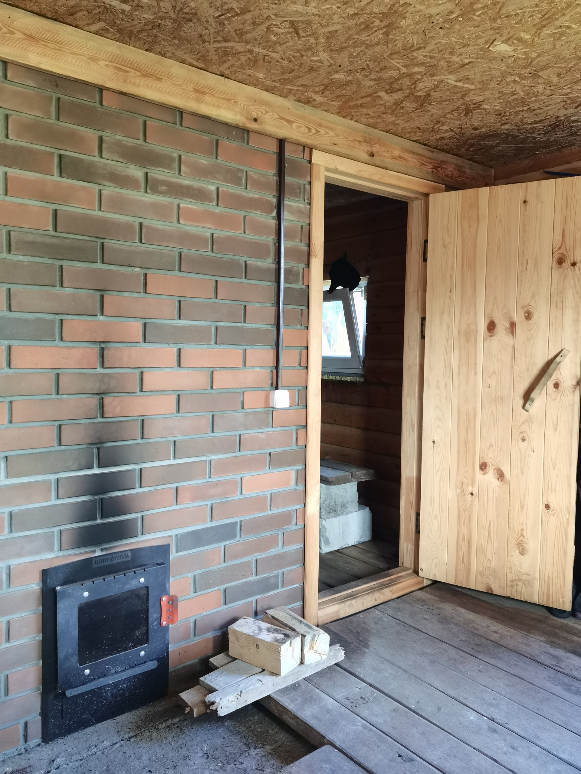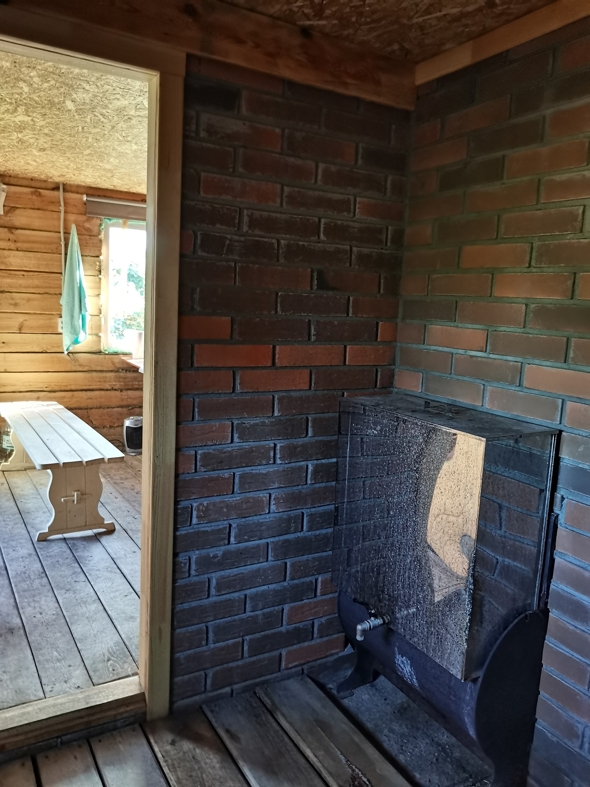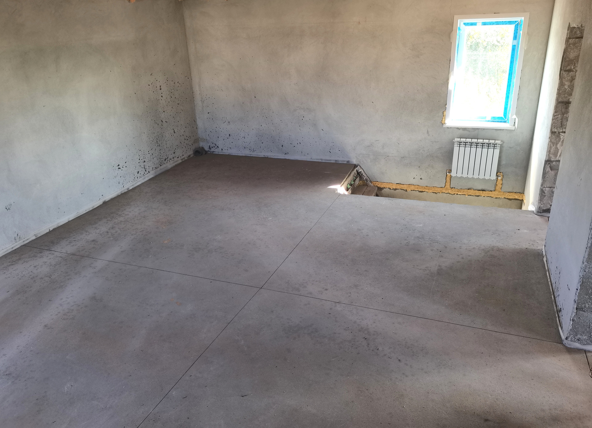 - В комнате отдыха все подготовлено для теплого пола, газовый вывод трубы до бани проложен.