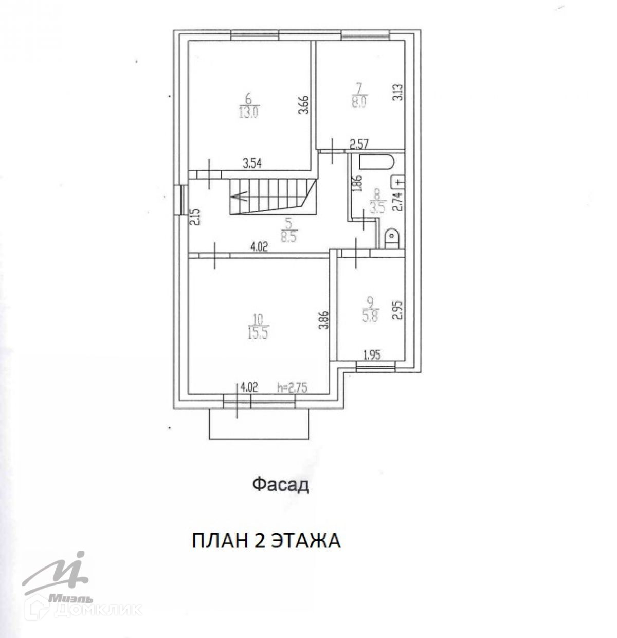 На втором этаже: четыре изолированные спальни, ванная, имеется балкон. Между этажами основательная деревянная лестница.