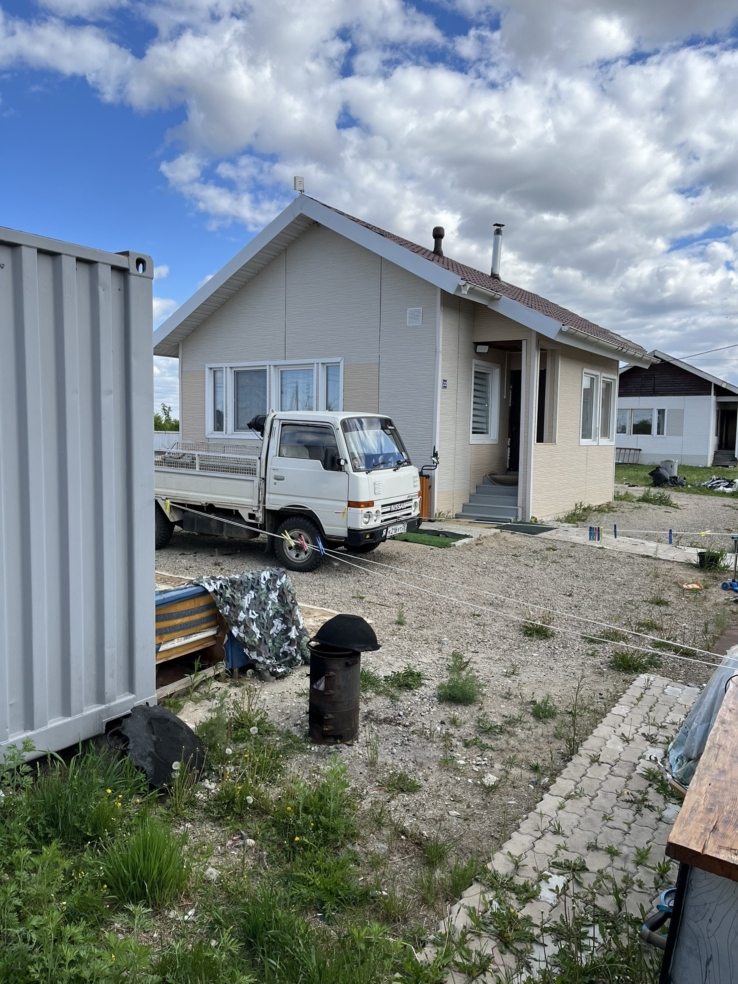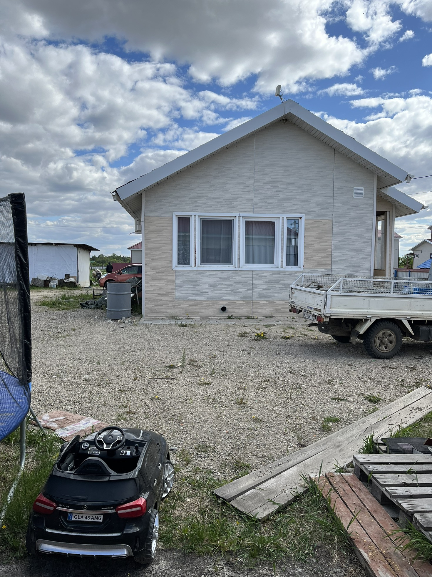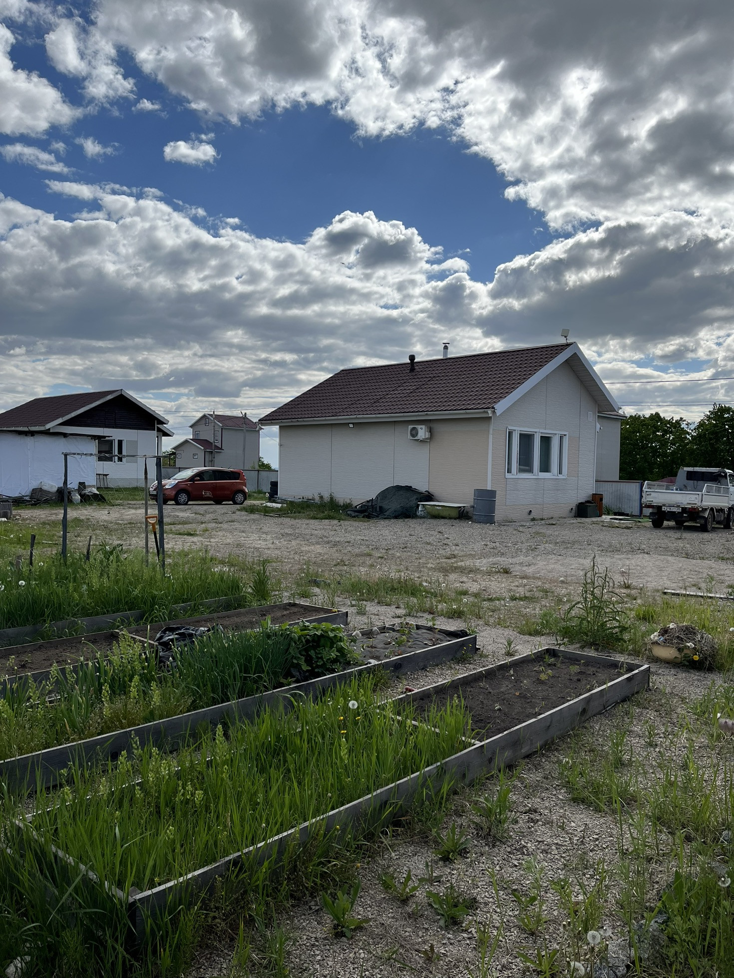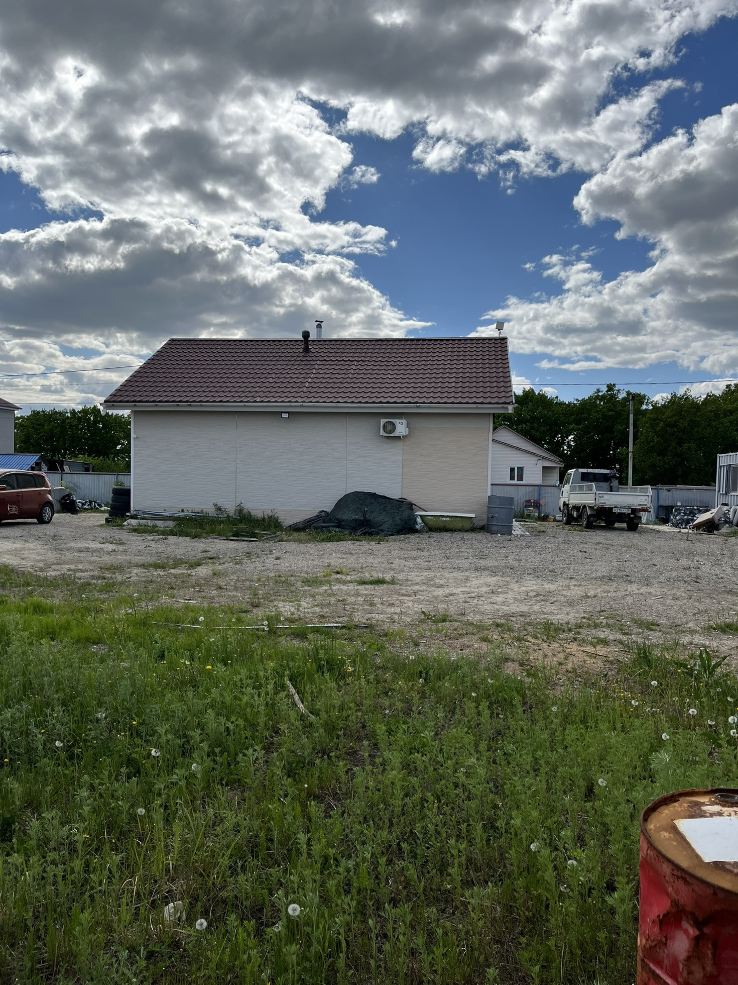 Удобное расположение дома на участке, что позволяет поставить хороший гараж, баню и сделать зону отдыха для всей семьи.