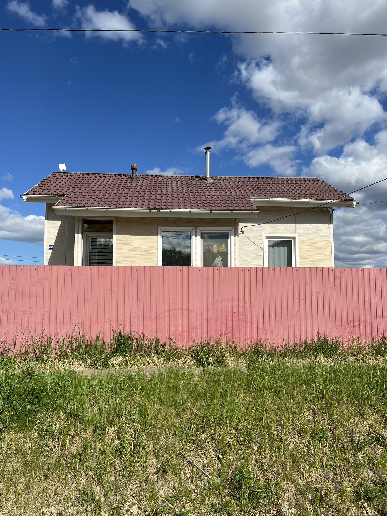 Забор сделан из профлиста. На участке имеются грядки.