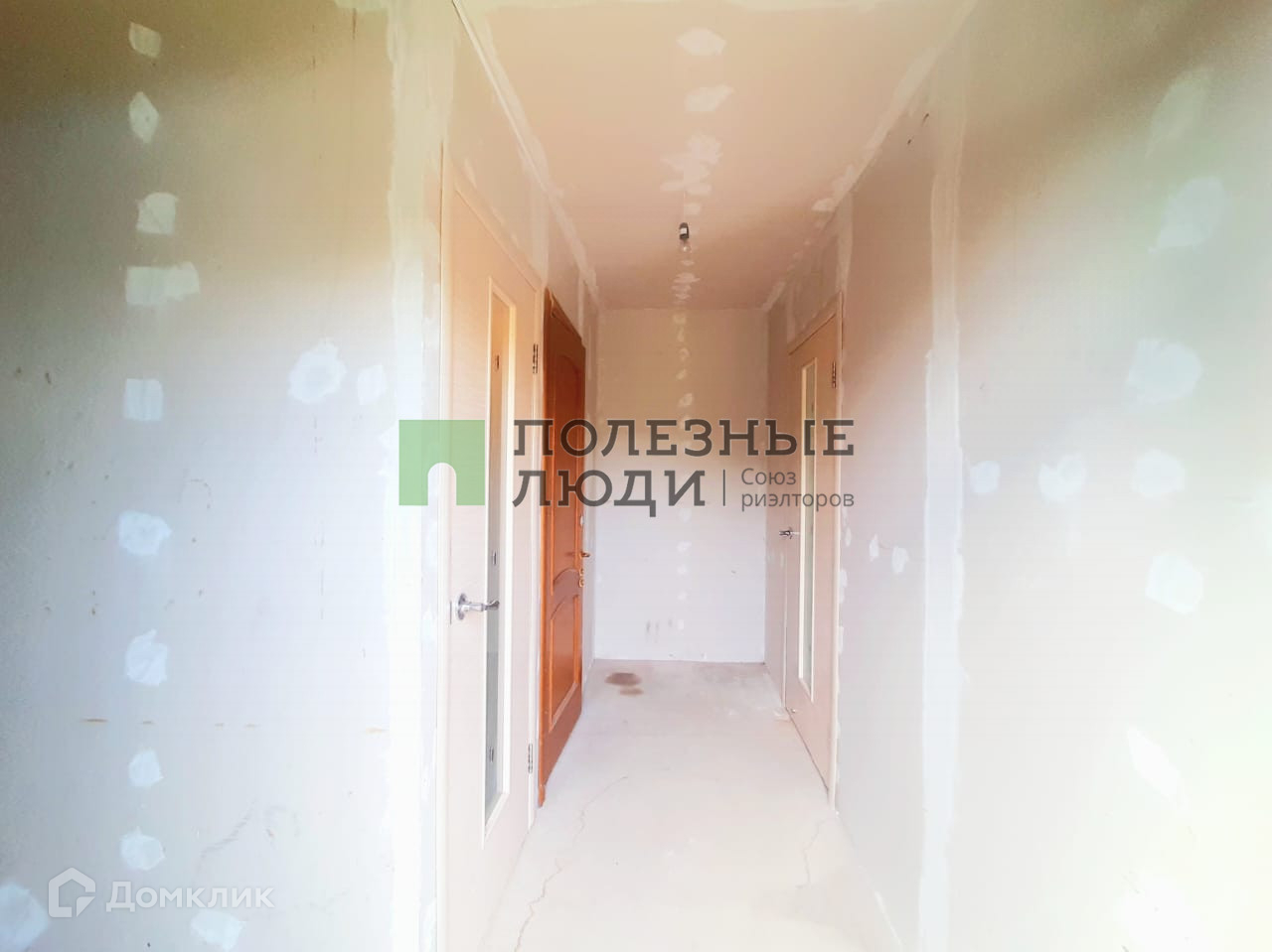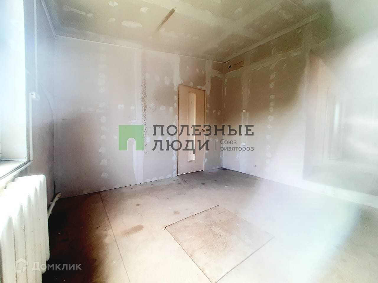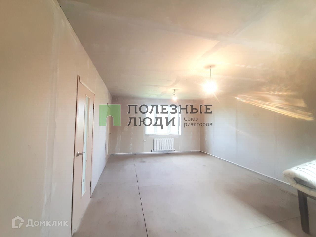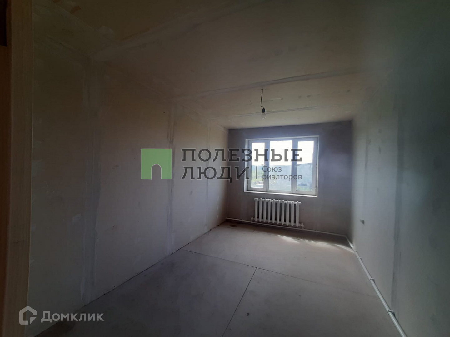 Чистовая отделка стен, готовы под обои или покраску, есть напольное покрытие.