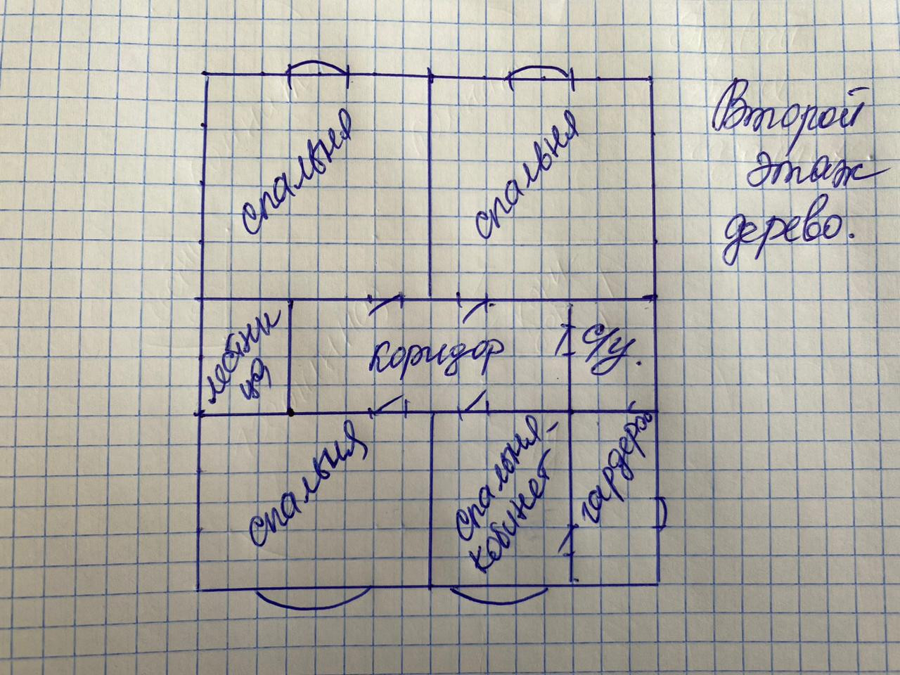 Второй этаж по плату четыре спальни и сан узел.
