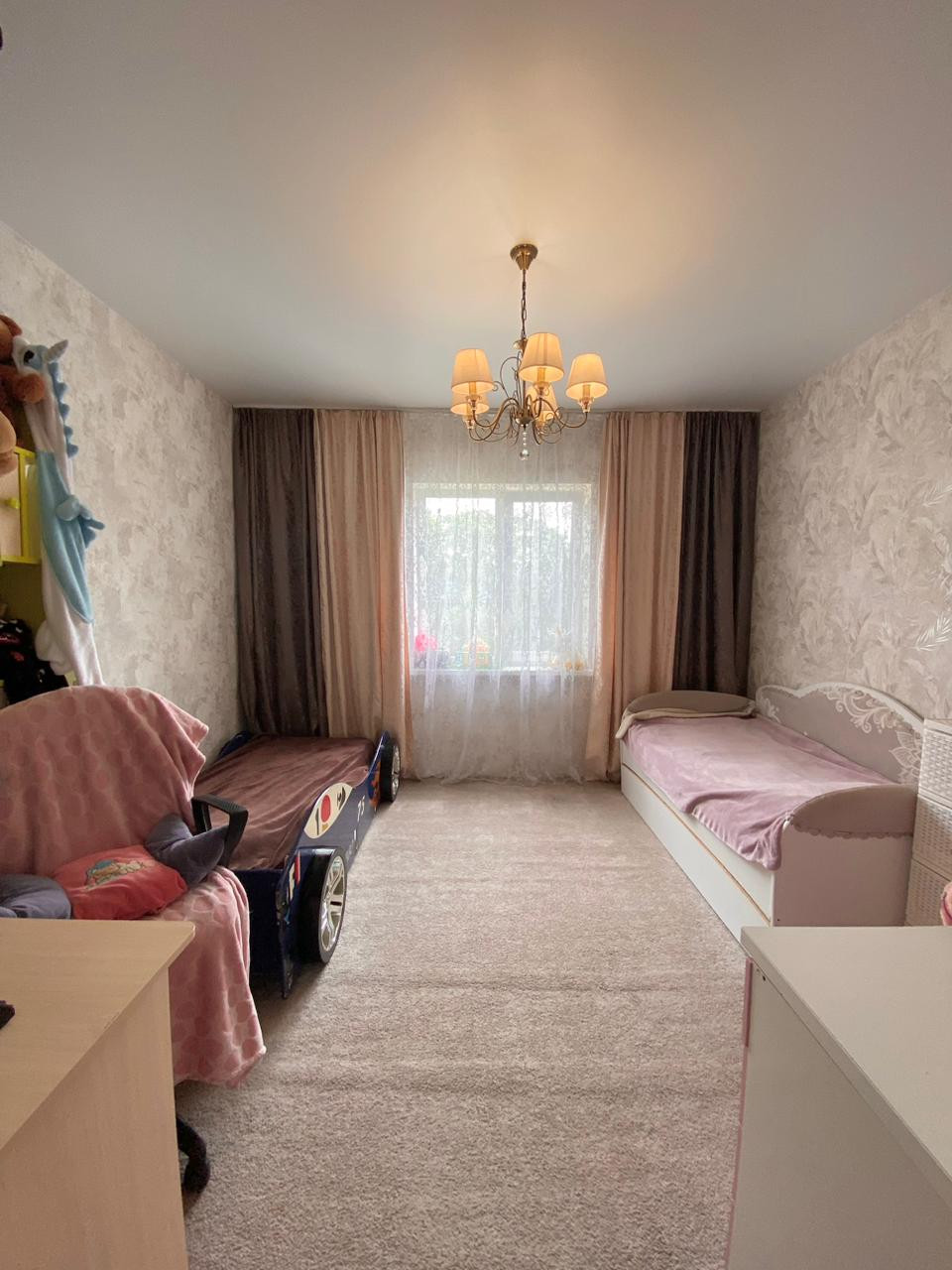 коридор,зал гостиная + кухня,сан узел,2 спальни.