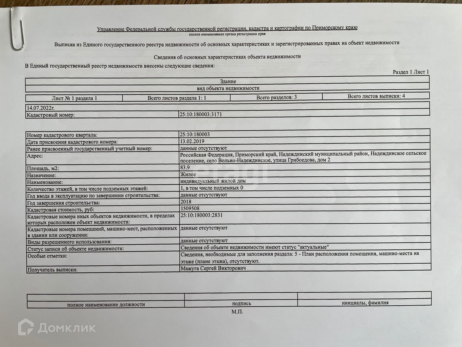 Номер в базе: 10119486. Район: Вольно-Надеждинское с.