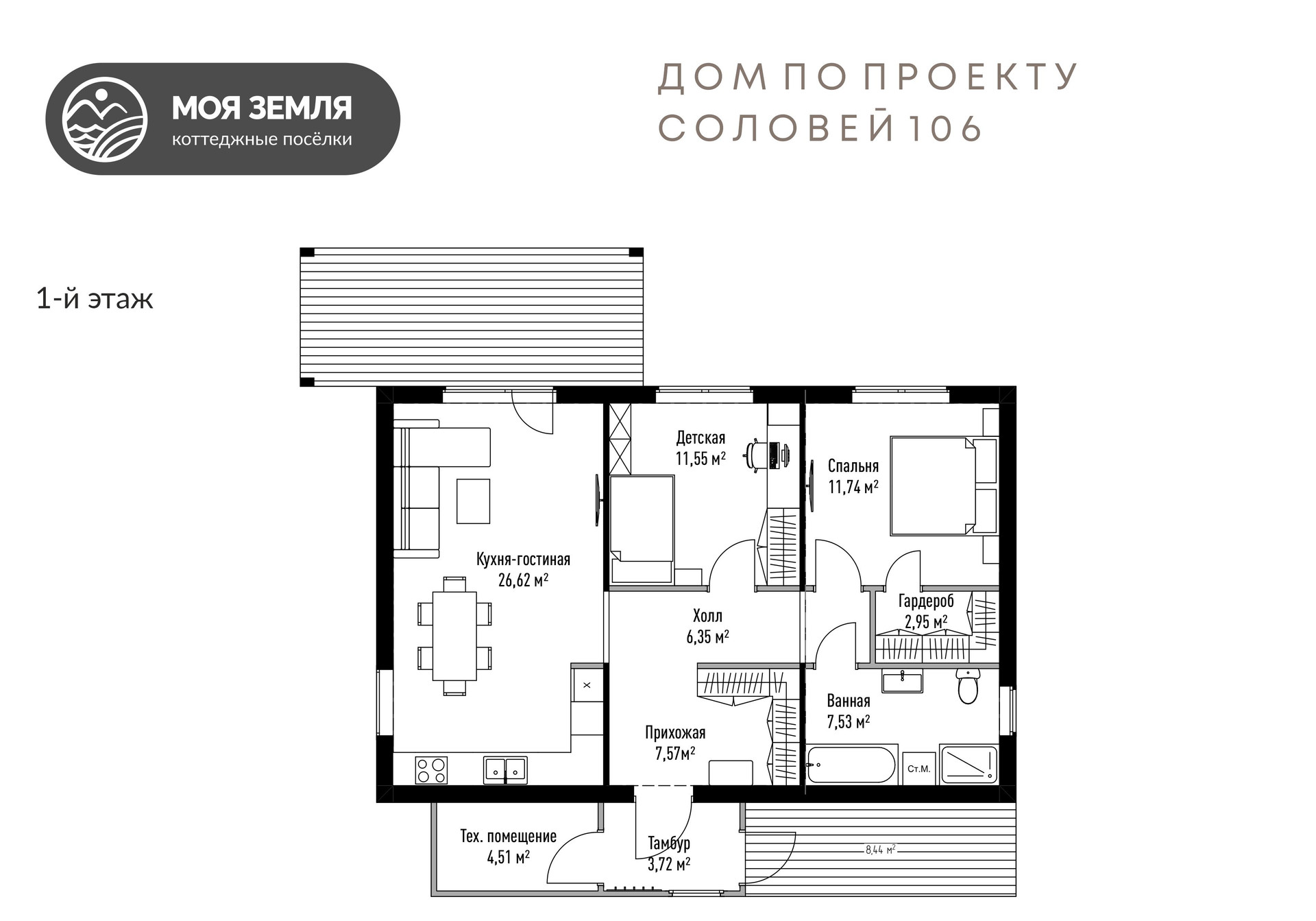 Предлагаем приобрести ДОМ по проекту СОЛОВЕЙ 106 на УЧАСТКЕ №19.