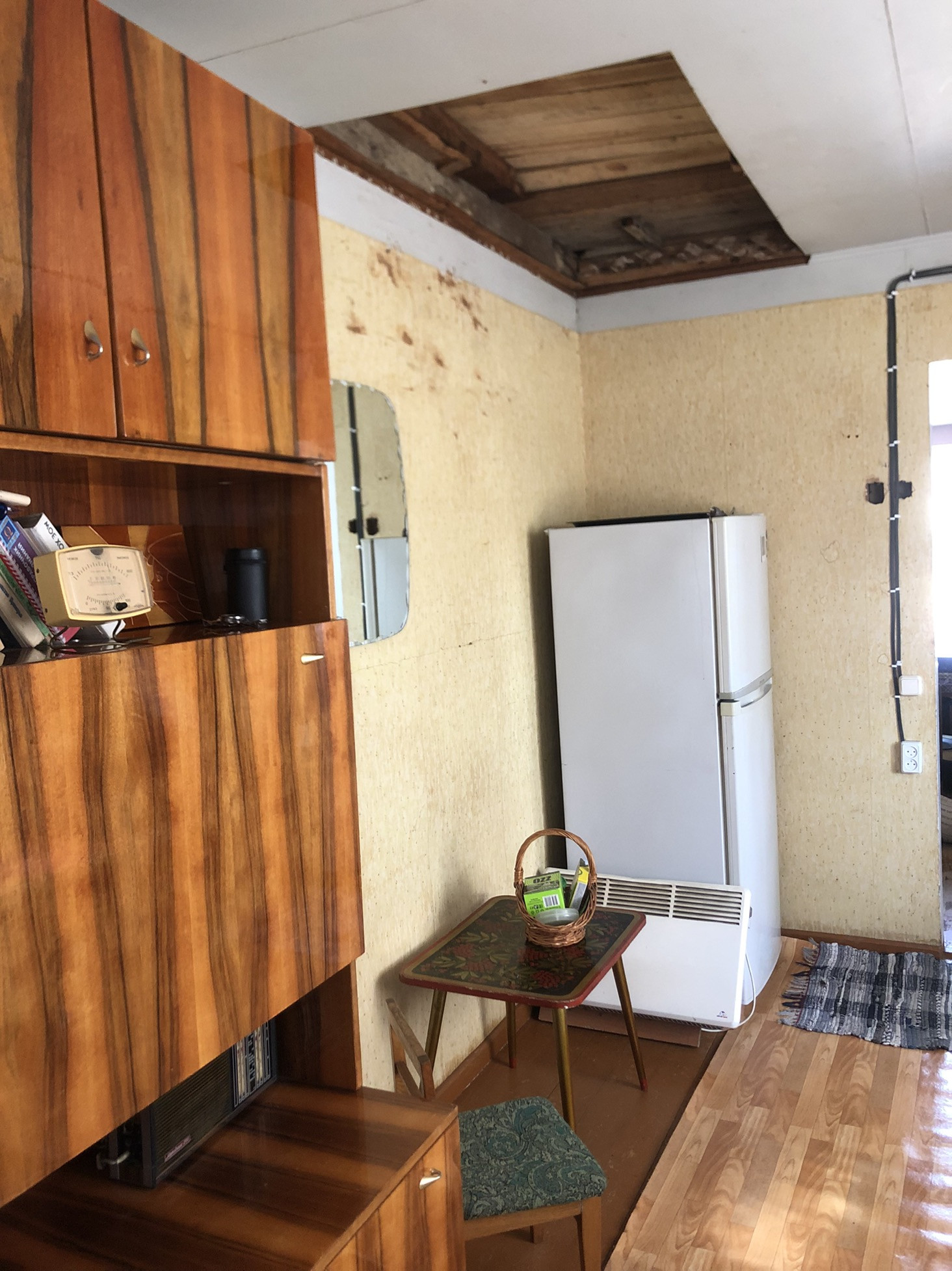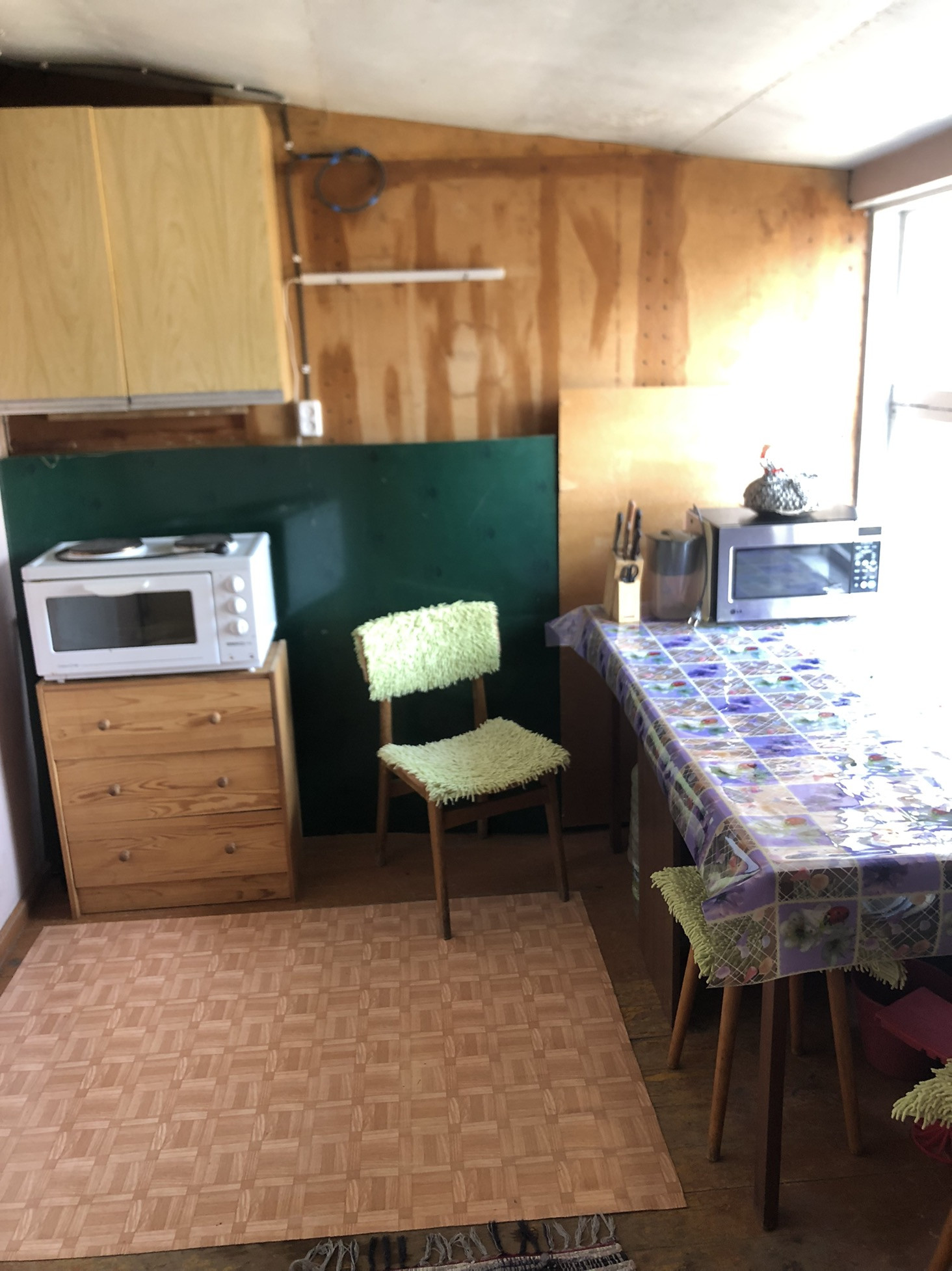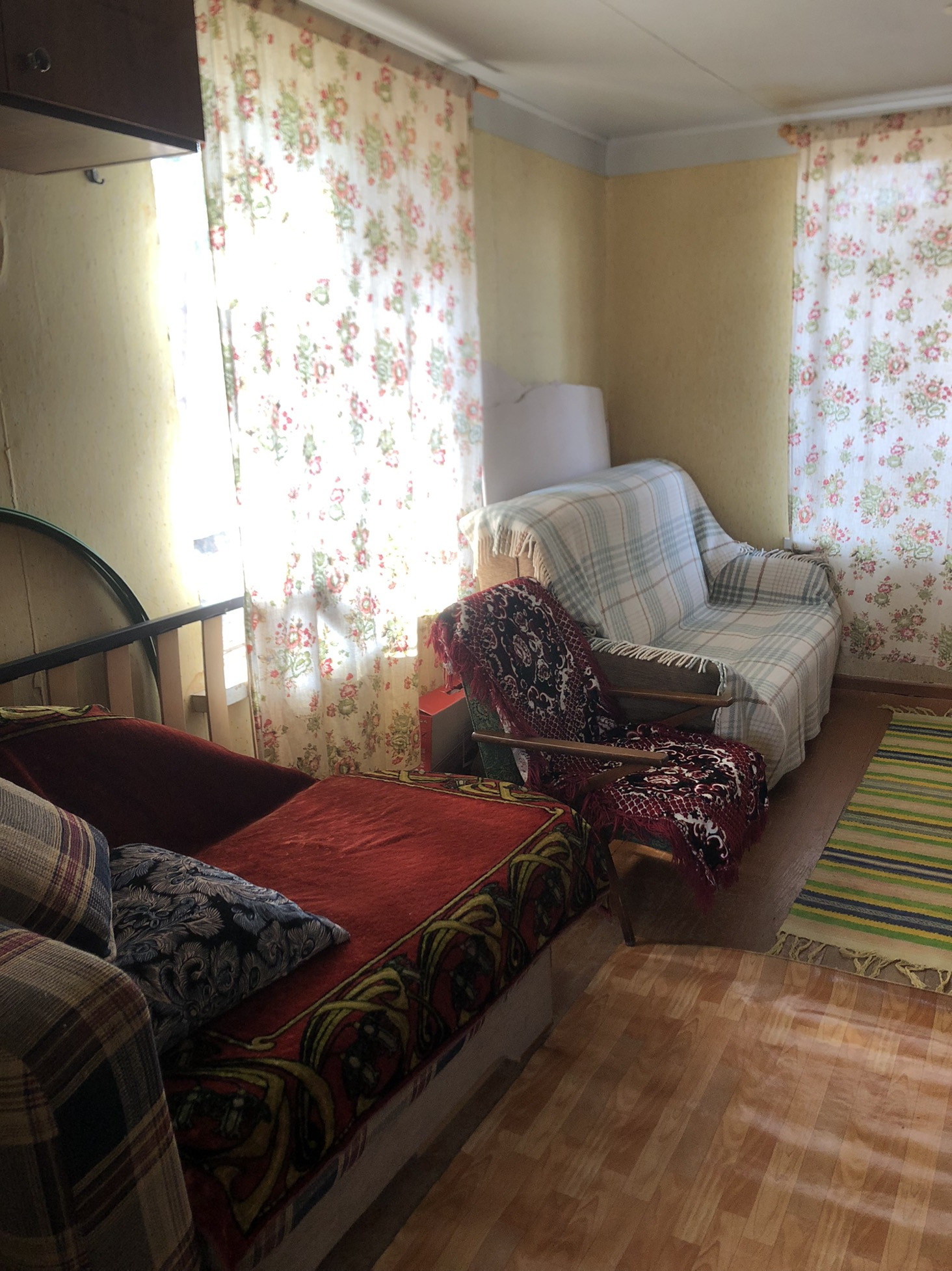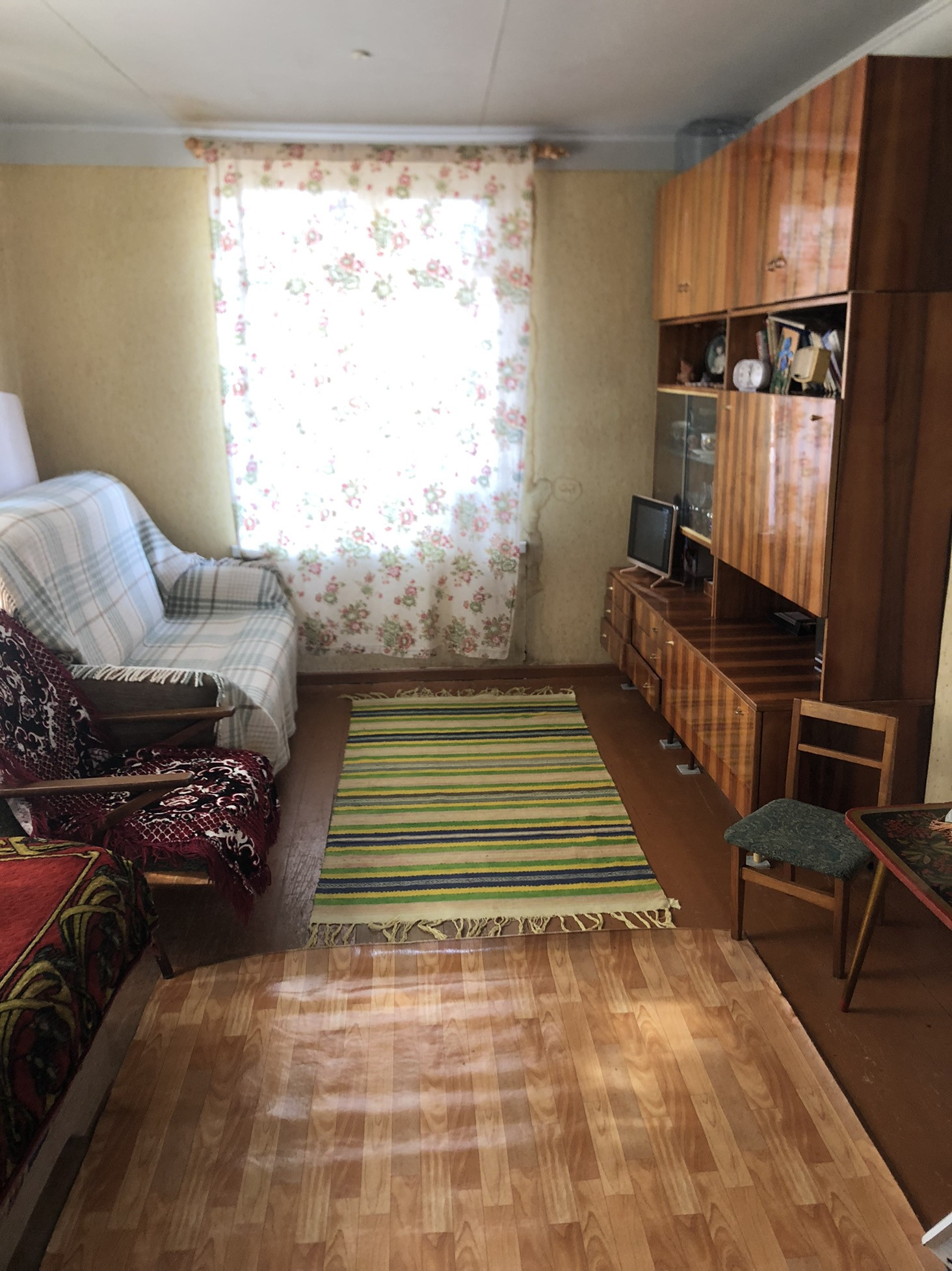 Дом добротный, свет заведён в дом, новая крыша. На первом этаже комната и кухня. Можно сделать лестницу на второй этаж, и будет ещё одна комната, сейчас используется для хранения разного. Мебель можем оставить. Дому требуется косметический ремонт.