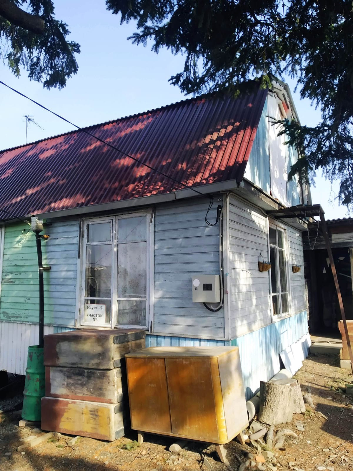 Двухэтажный дом на двух хозяев, что экономит место на участке. Соседи по дому хорошие семейные.