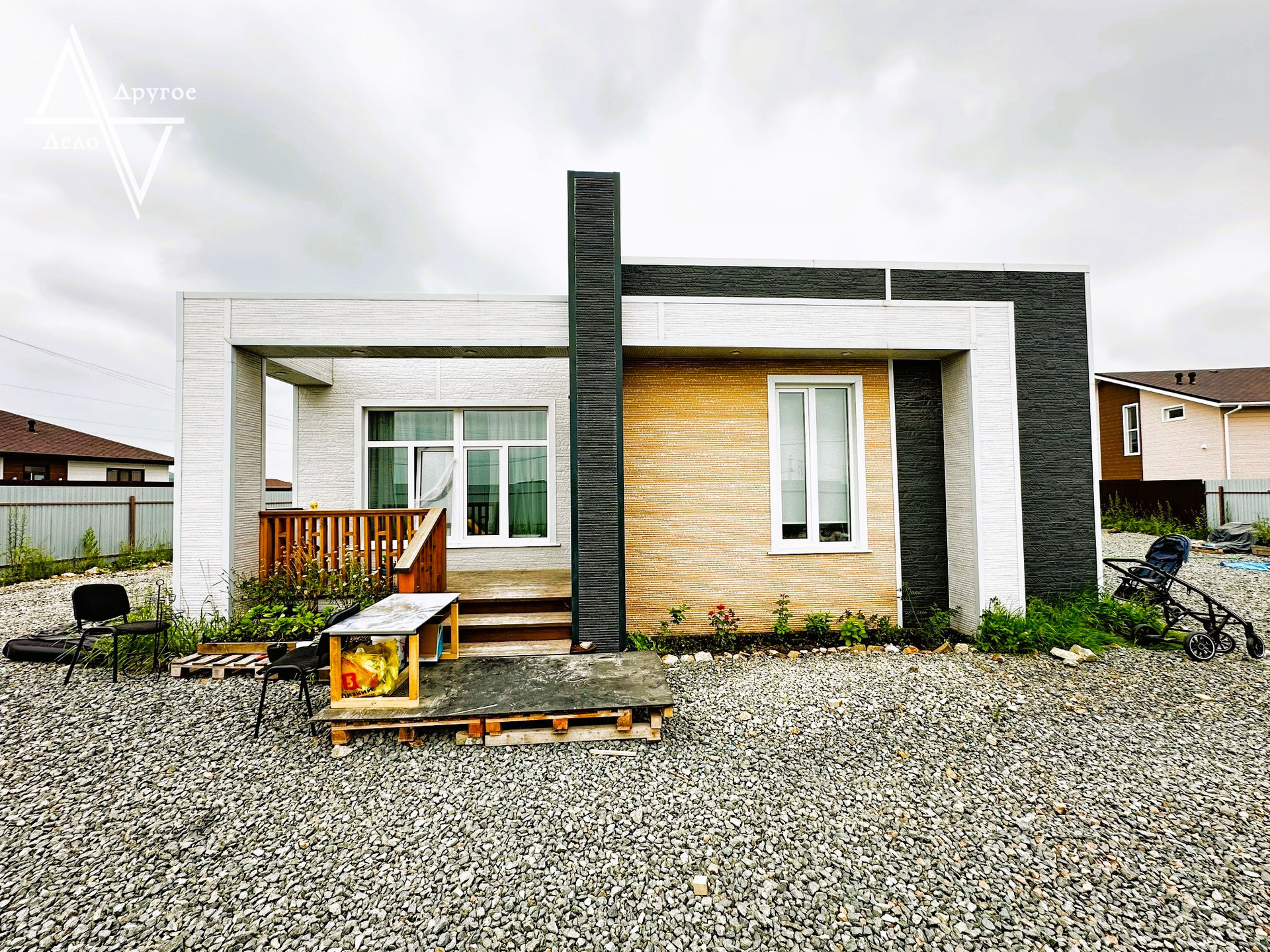 Дом снаружи обшит панелями Ханья Г1 по Японской технологии (не горючие).