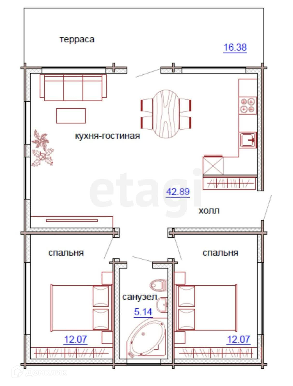 Общая площадь 85 м2