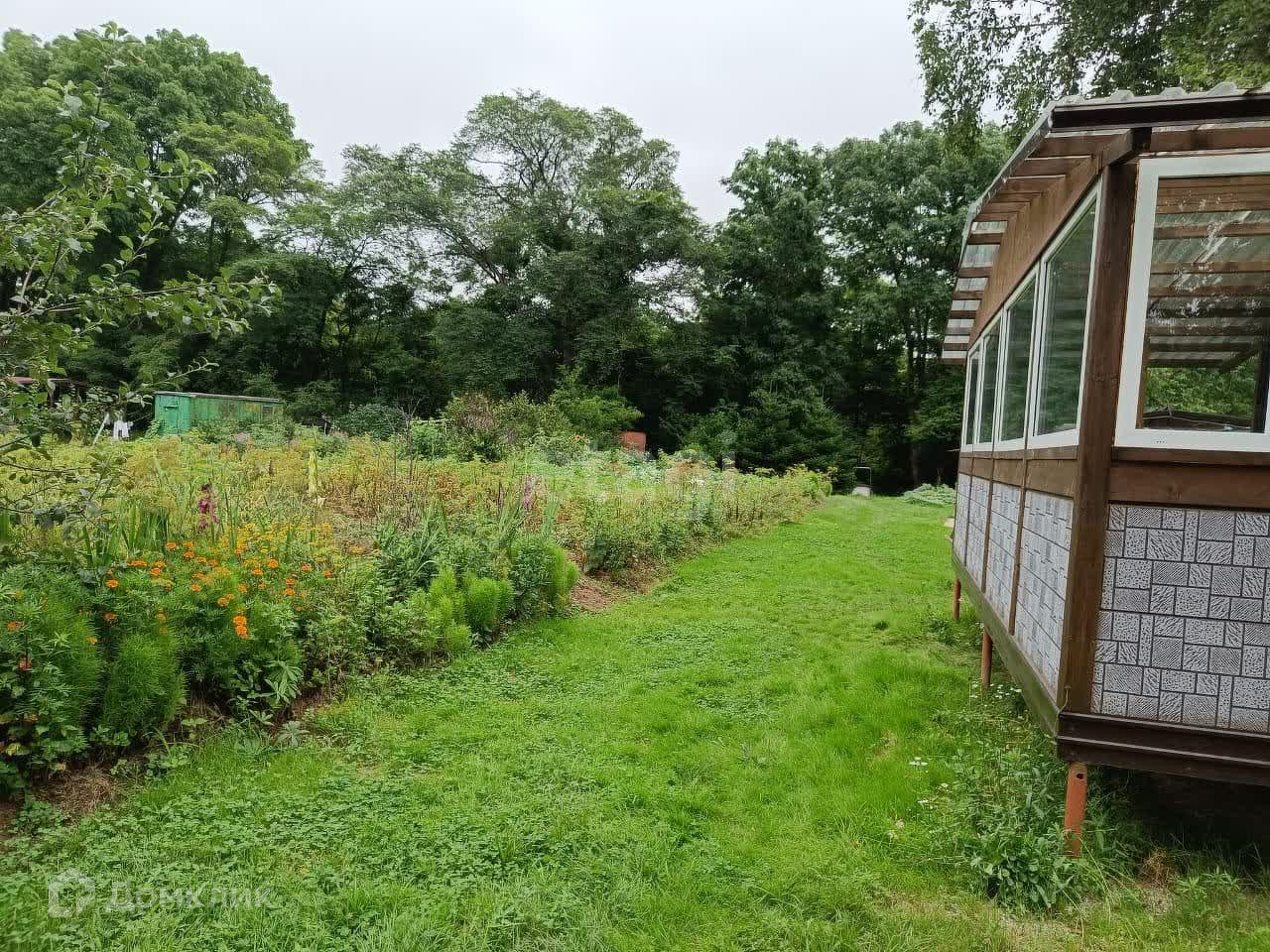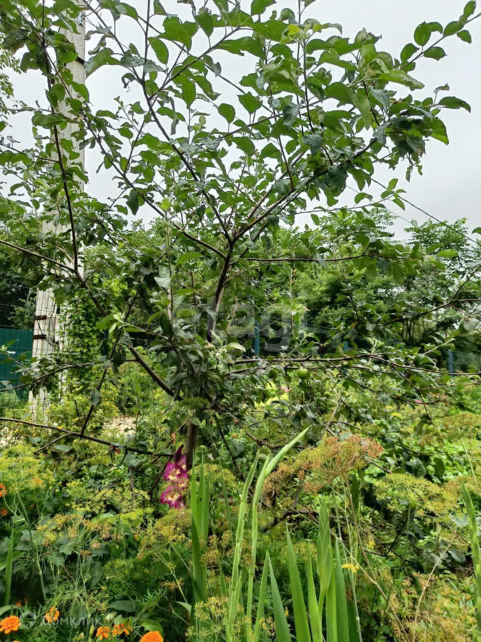 Земля плодородная, на участке много плодоносящих кустарников и деревьев яблоня , малина, смородина, вишня и прочее, цветы-многолетники.