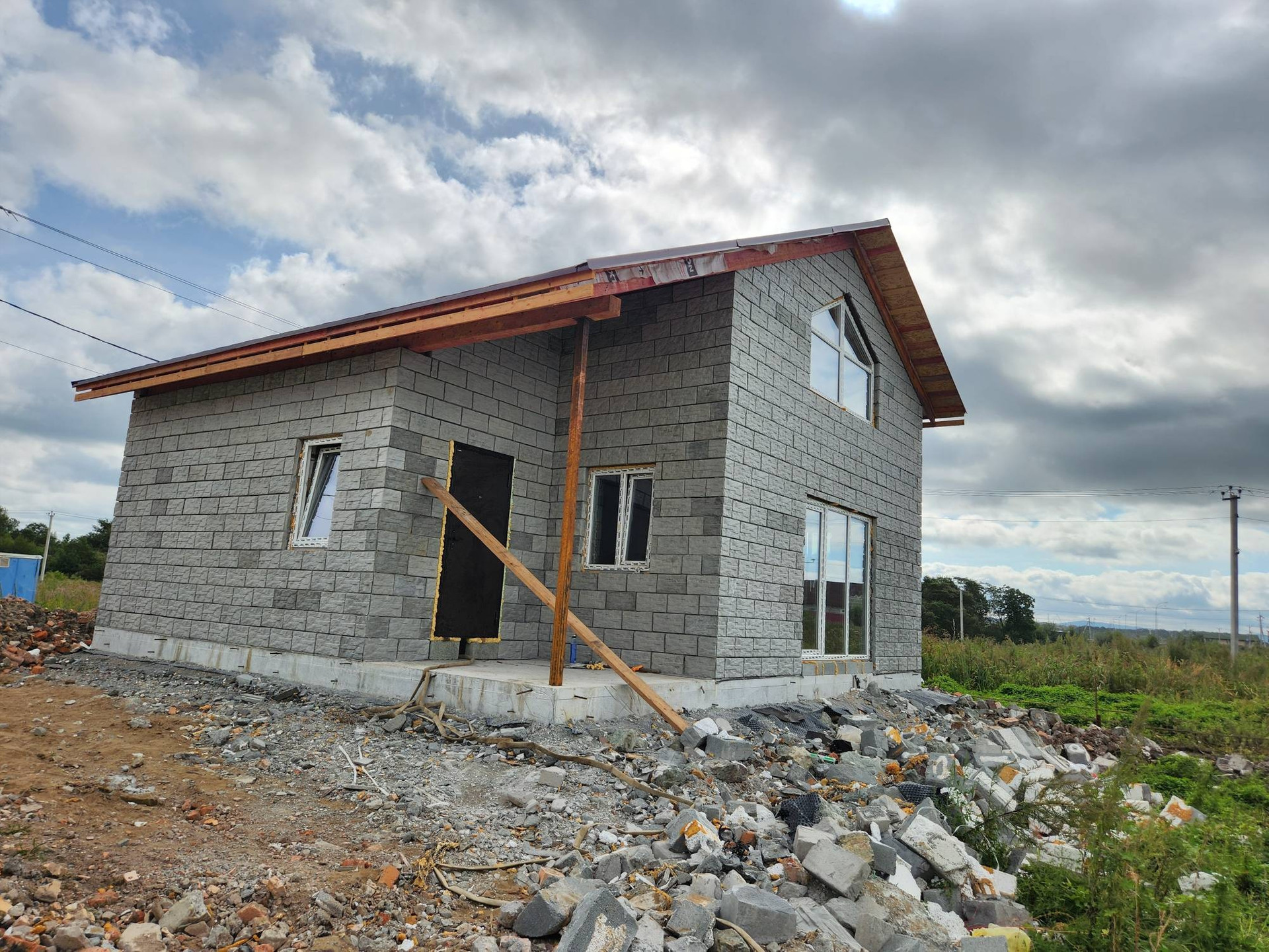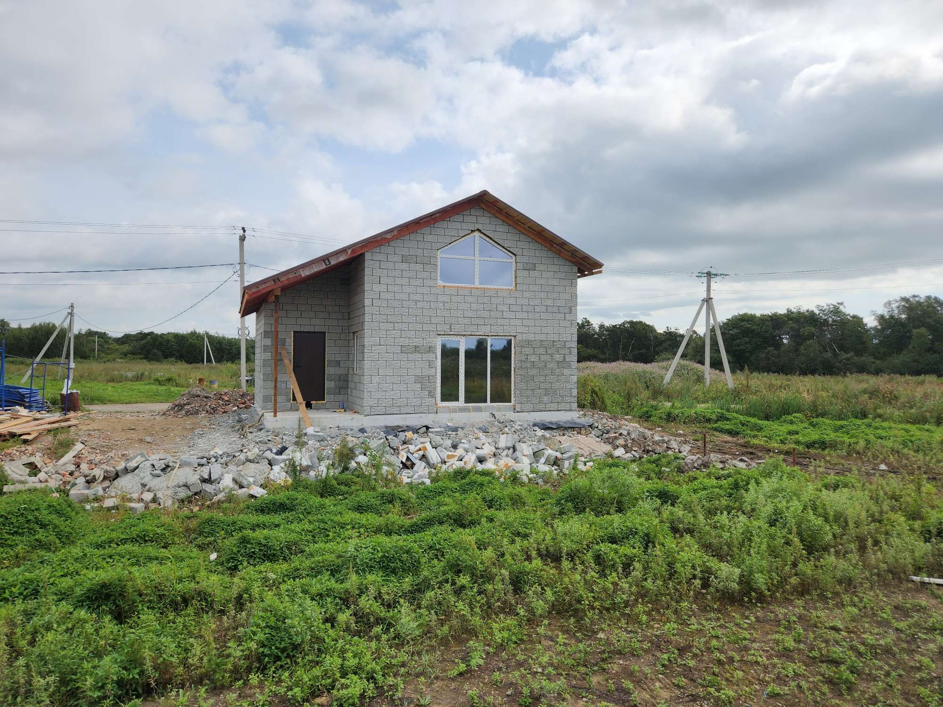 ОДНОЭТАЖНЫЙ, ОБЩЕЙ ПЛОЩАДЬЮ 94 КВ.М. Дом находится на ровном, геометрически правильном участке земли 6 соток.   Фундамент дома выполнен в виде монолитной бетонной плиты расположен на возвышении из отсыпанной и утрамбованной скалы и выгодно выделяет дом относительно соседних строящихся зданий. Благоустроенная, асфальтированная дорога с освещением и автобусными остановками находится на оптимальном расстоянии от участка - около 200 метров.