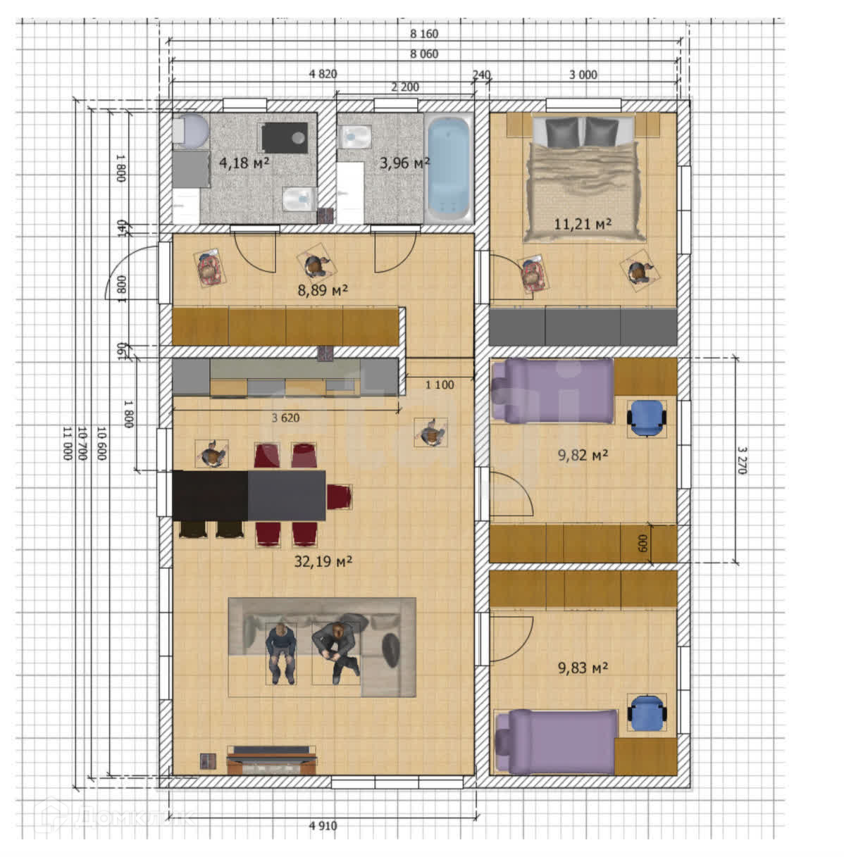- Общая площадь 126 кв.метров