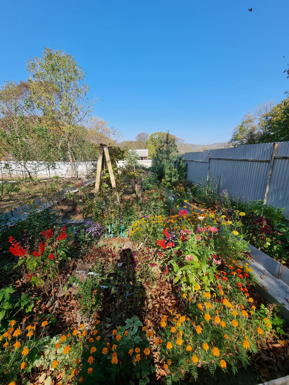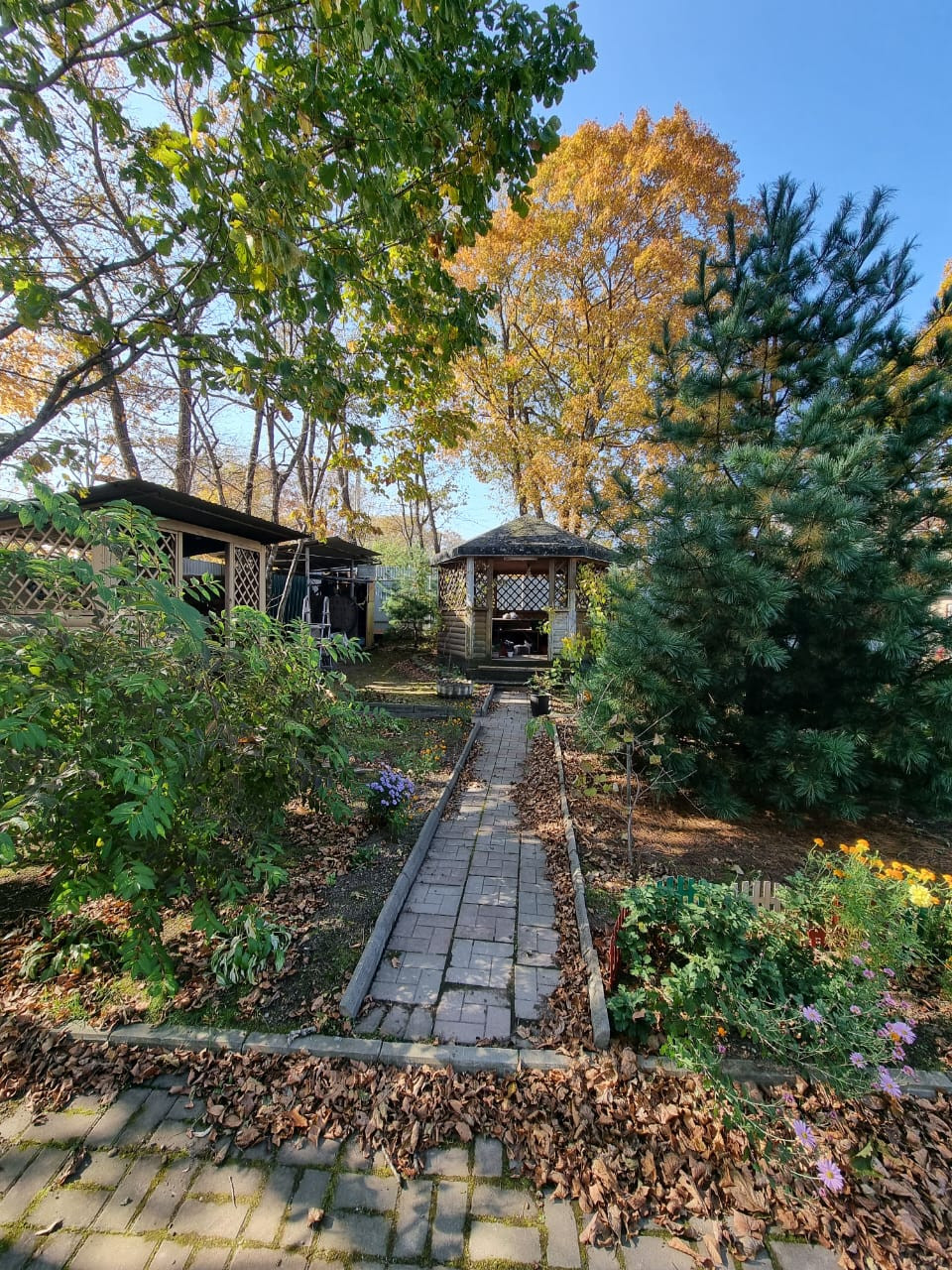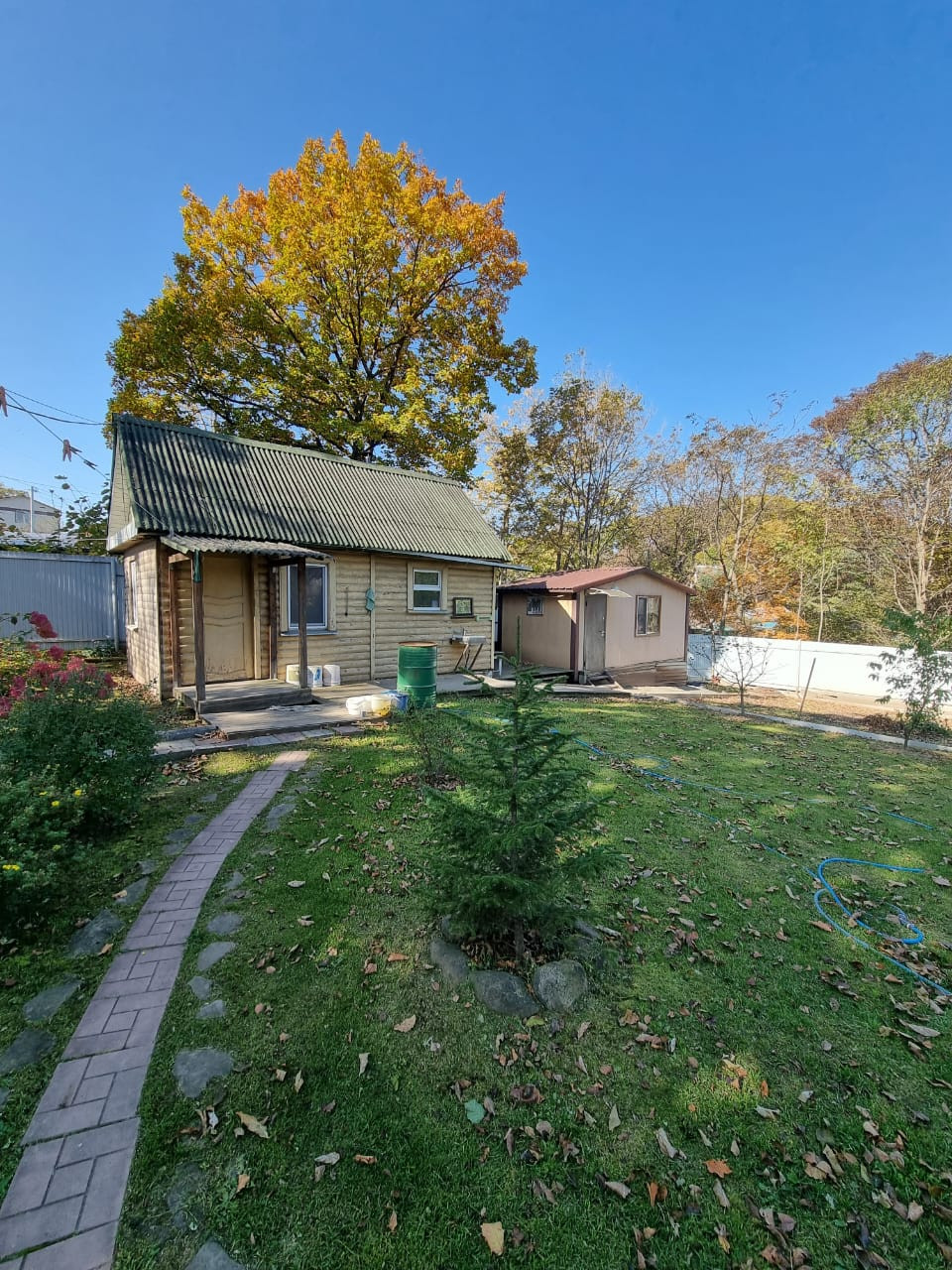 - Участок разработан, посажены и дают урожай - яблони, абрикосы, персики, виноград и т.д.