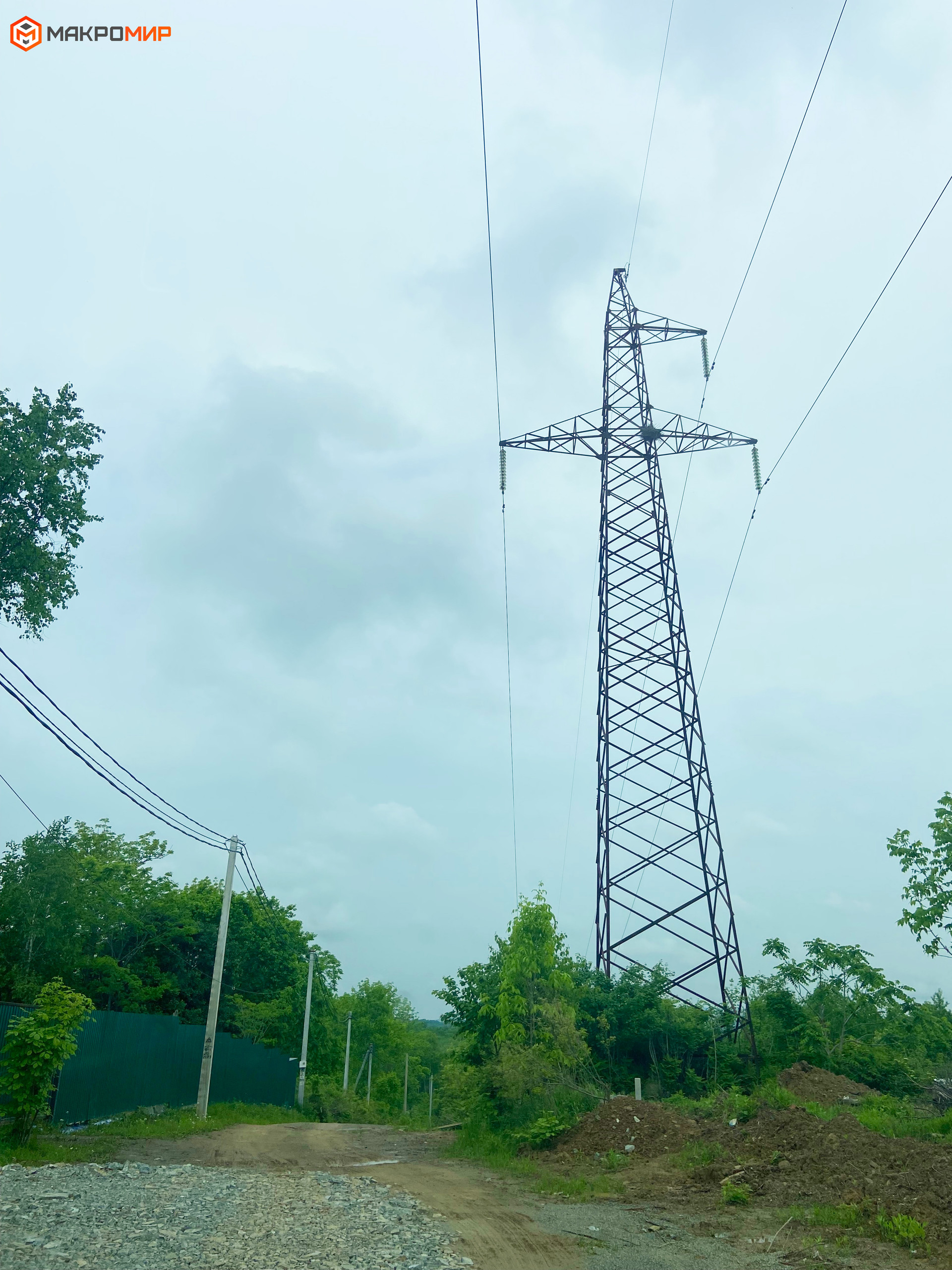 Столбы для подключения к электросетям расположены рядом.