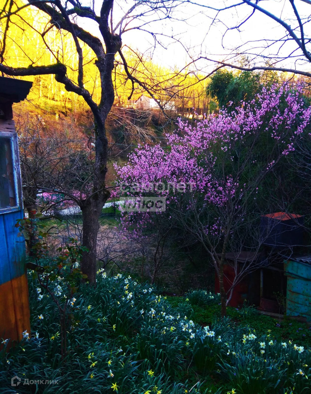 Участок имеет незначительный естественный уклон. В саду большое разнообразие как культурных, так и декоративных насаждений: инжир, мушмула, хурма, яблони, алыча, слива,кизил, персик, фундук, грецкий орех, виноград, красная смородина, калина, крыжовник, множество разнообразных цветов.