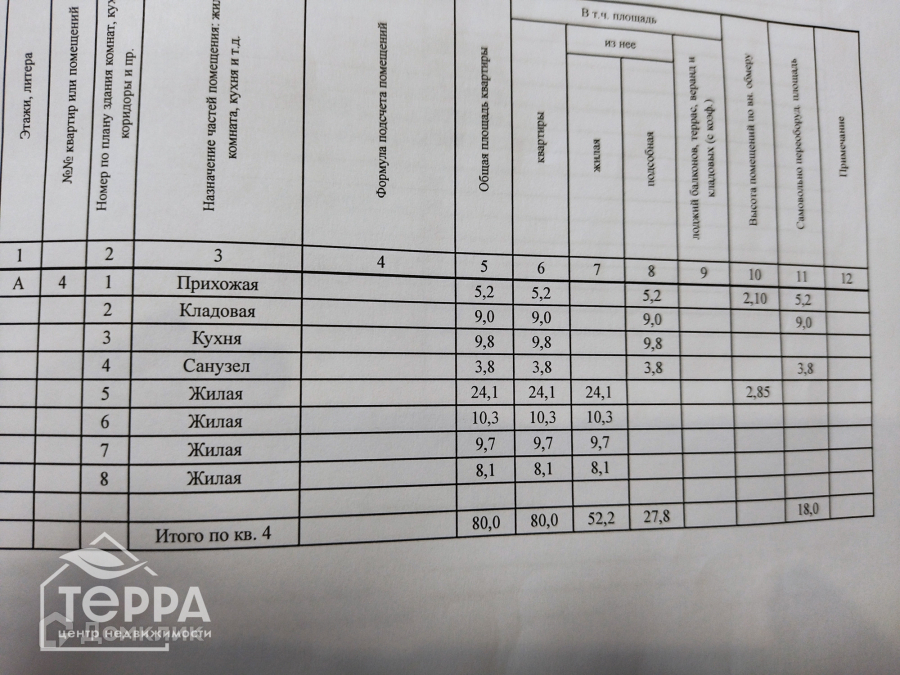 Жилая площадь 52.2 м2