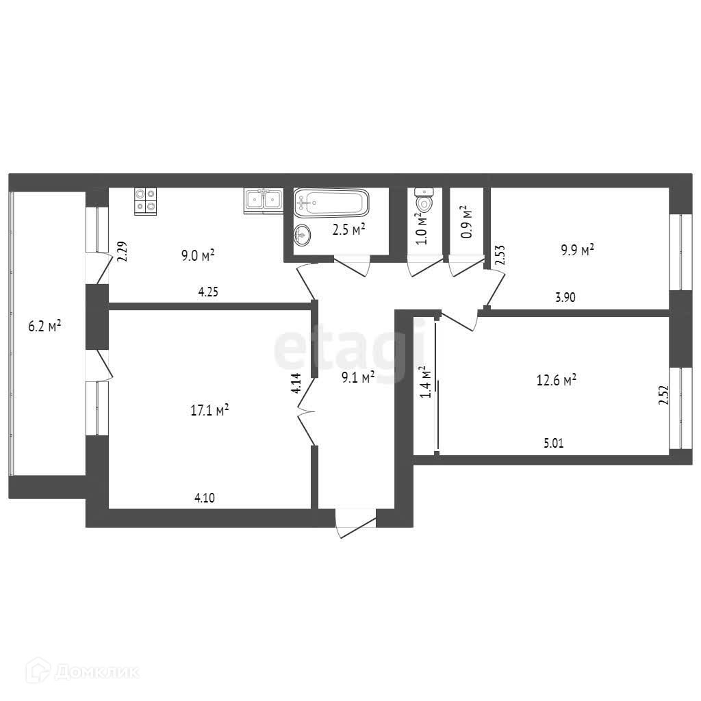 Общая площадь 63.5 м2