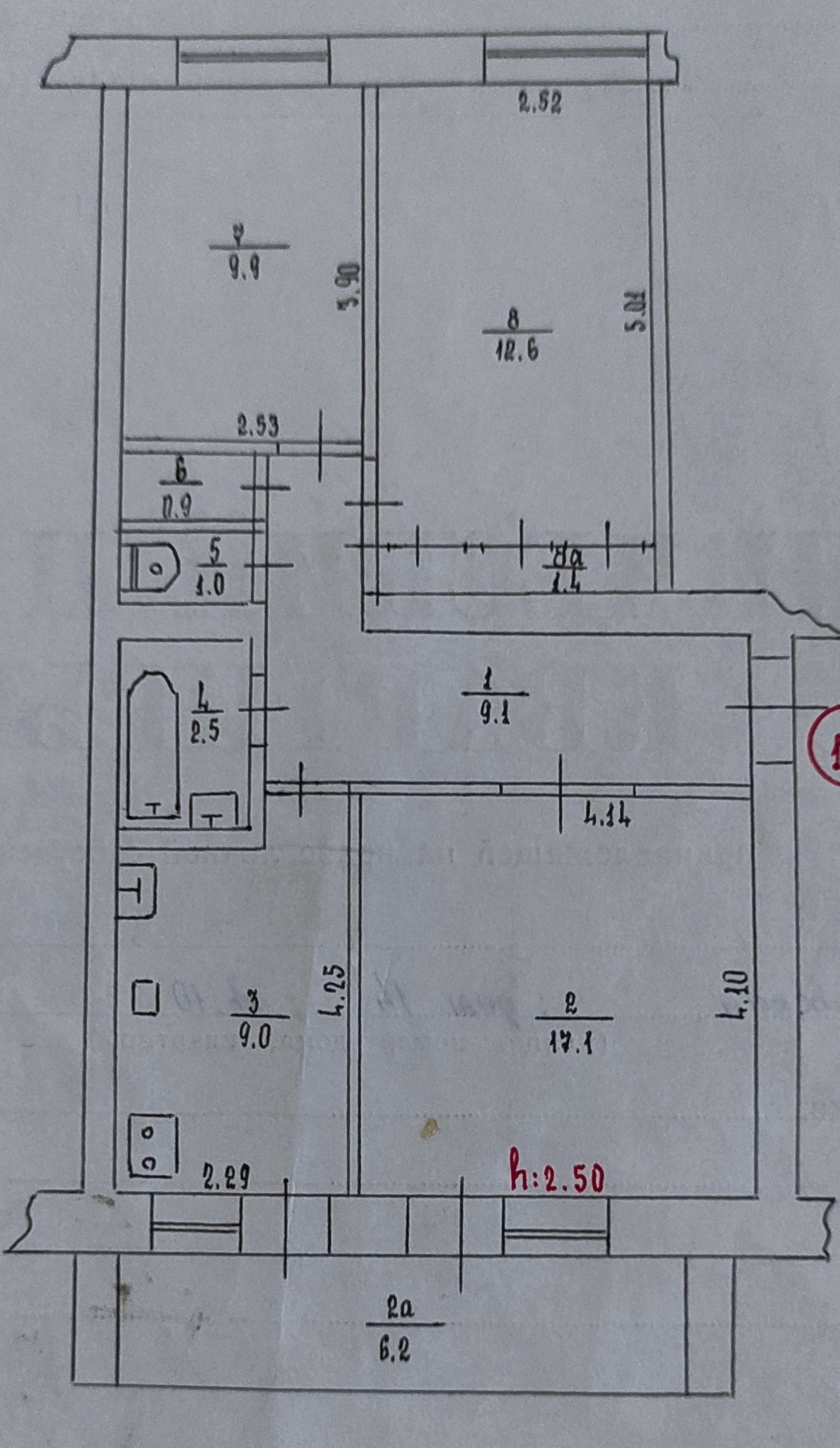 Высота потолков 2.5 м