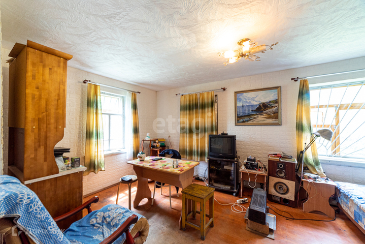 Дом из цельного бревна (листвяк), ленточный фундамент, подведены все коммуникации, септик трех ступенчатый. Газ по разделу участку, получен и утвержден проект подключения. Подготовлено помещение для газового котла. Свет 3 фазы, 15 квт на участке. Скважина около дома 20 м глубиной, вода питьевая, имеется заключение. Вода круглогодично, заведена в дом. Отопление в доме печь и конвекторы, остается котел и трубопровод для водяного отопления.