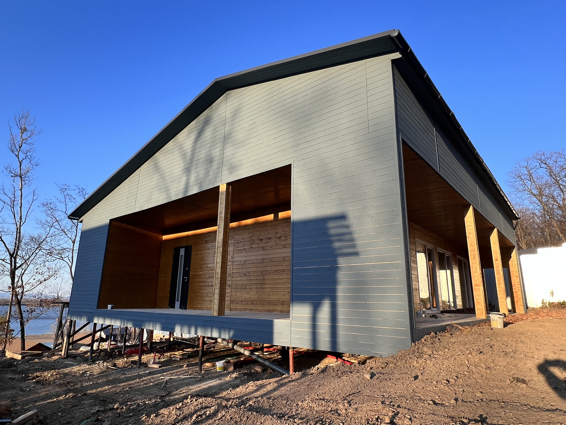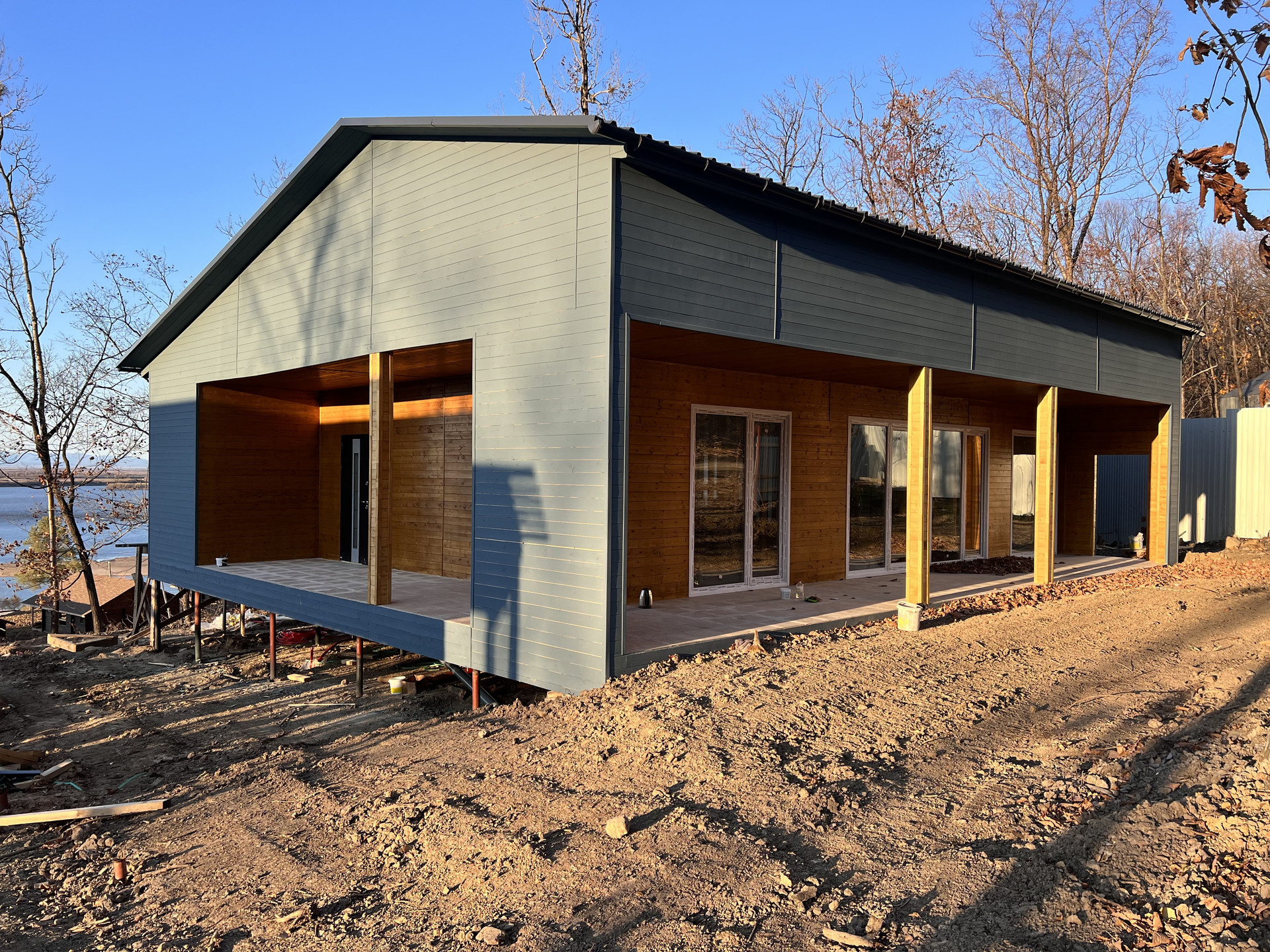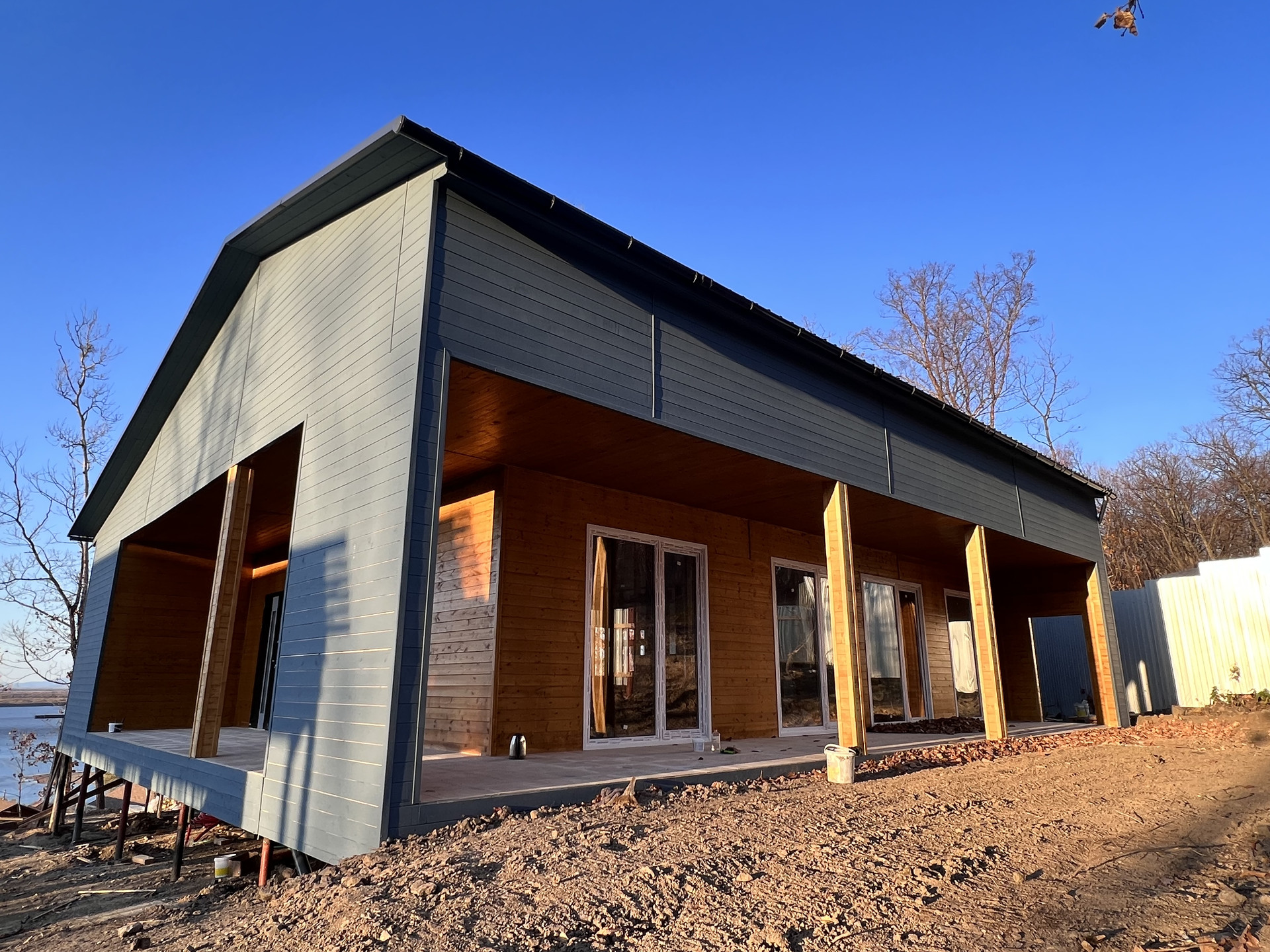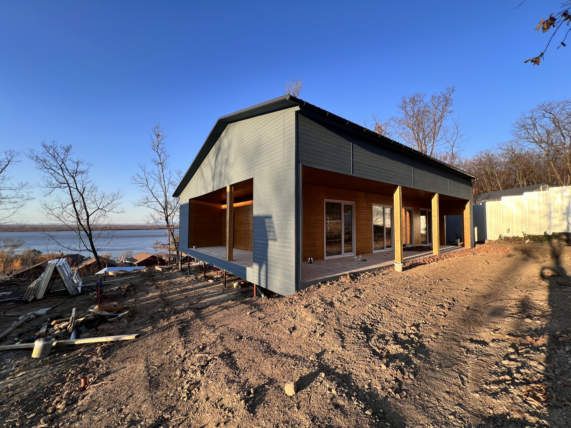 Продается коттедж с.Воронежское-3. Материал стен каркас(дерево) фундамент винтовые сваи. В доме 3 комнаты кухня гостинная гардероб сан.узел. Панорамные окна с кухни выход на террасу с видом на амур. В доме теплый пол. Водоснабжение скважина, канализация цептик.