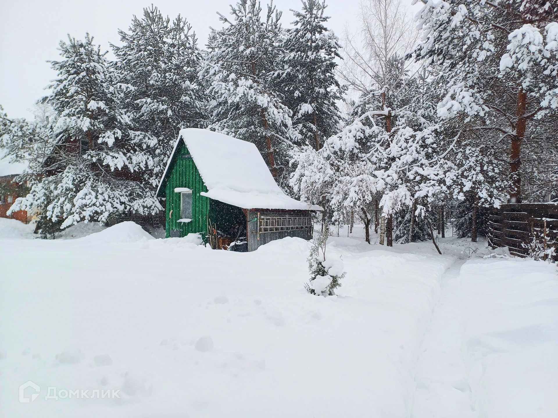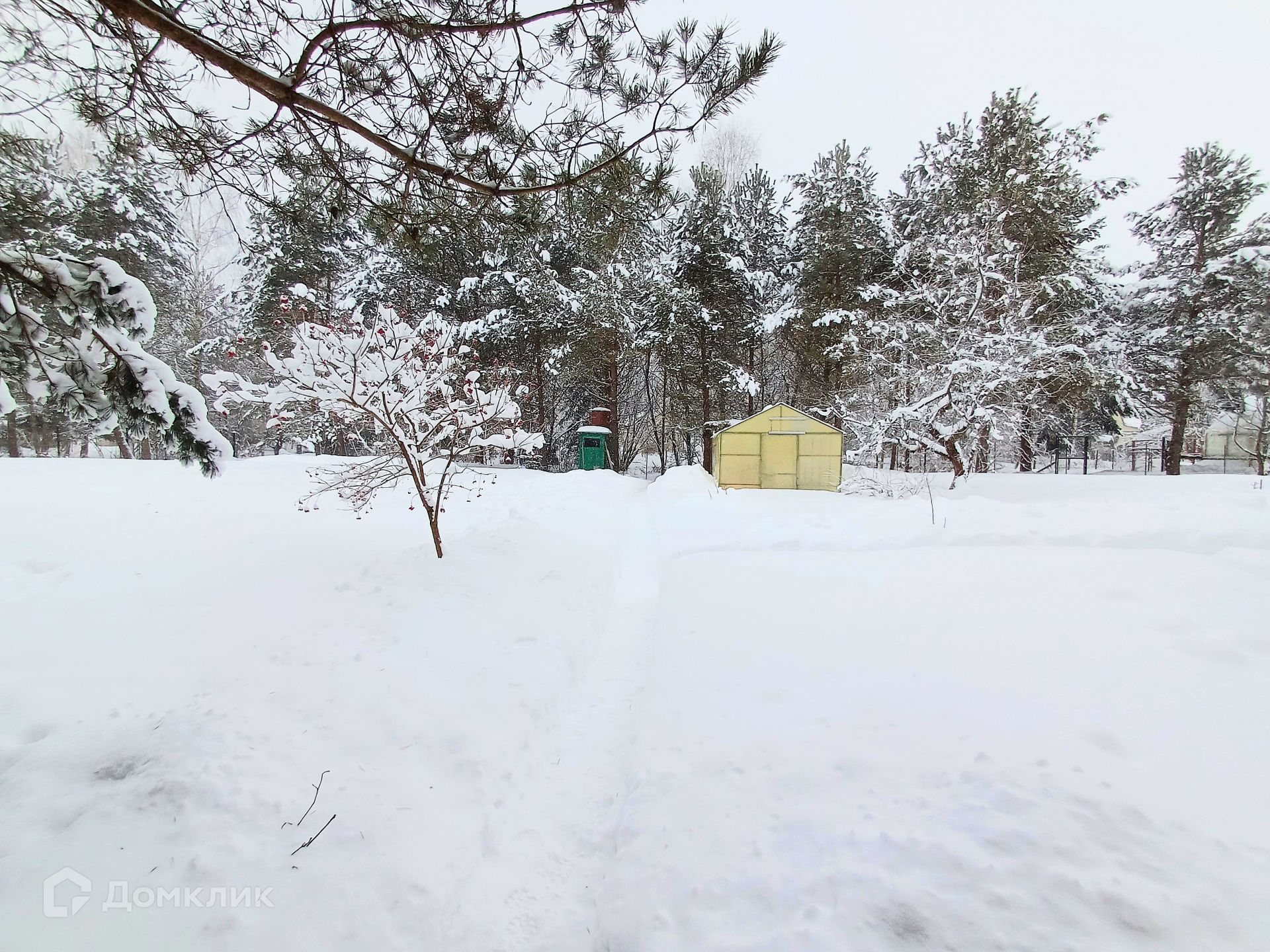 На участке растут ели, сосны. Плодовые деревья (яблони), кустарники (малина, ежевика, черноплодная рябина, жасмин и т.п.). Также есть теплица- 6×3 метра и садовый домик, для хранения инвентаря - 4×4 метра ( все это входит в стоимость).