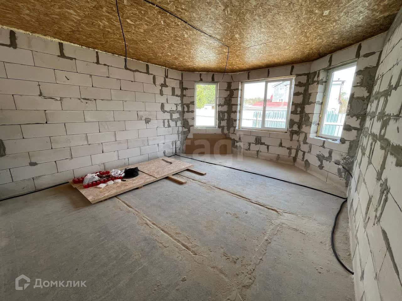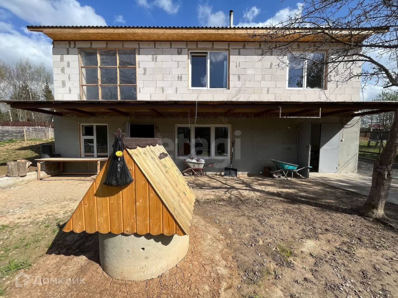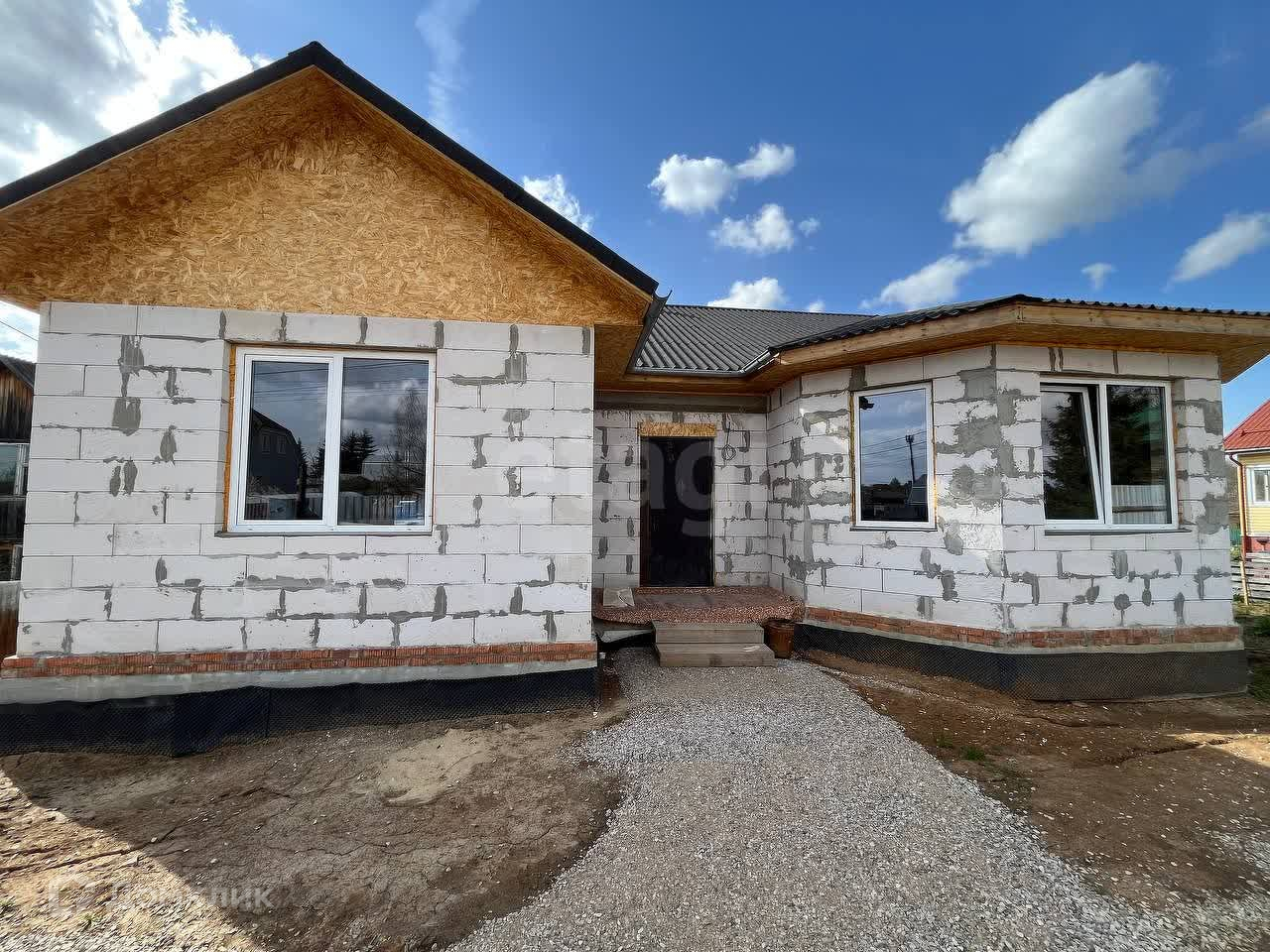 Дом построен в 2023 году и состоит из двух этажей: цокольный и жилой. На цокольном этаже 3 больших помещения свободного пользования, котельная и погреб. На жилом этаже располагается прихожая, холл, 3 спальни, совмещенная ванная комната, отдельная уборная и кухня – гостиная с выходом на террасу.