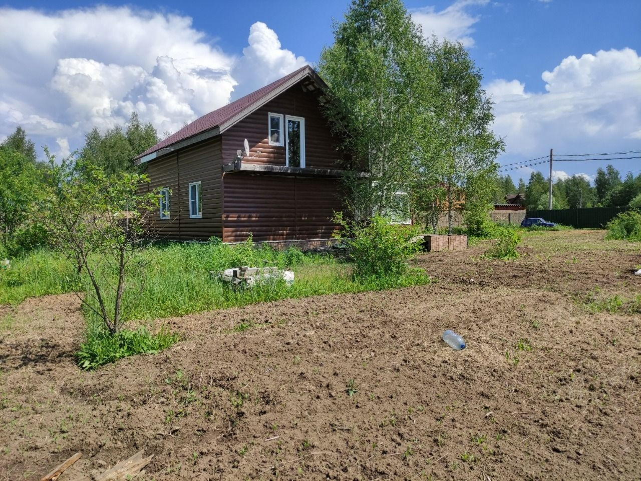 Электричество 15 кВт, заведено в дом. Вся разводка: для света выведена с лампочками, розетки по всему дому. Газ по границе участка, септик Топас, Колодец.