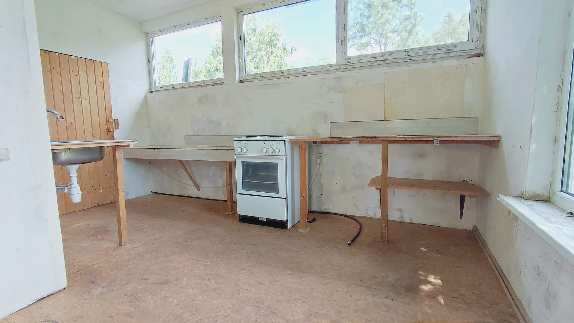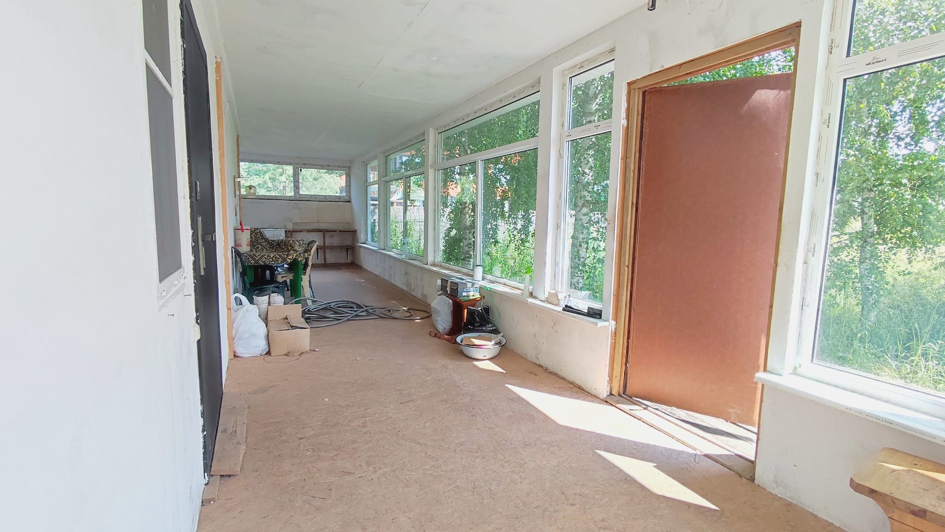 На первом этаже: две комнаты, большая ванная с возможностью установки сауны. Большая застекленная и утепленная веранда, может быть кухней и столовой. Бойлерная со всеми коммуникациями.