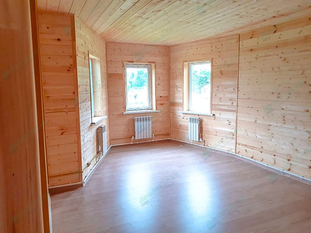 Материал стен – газобетонные блоки с утеплением, отделка наружная – штукатурка, внутренняя – имитация бруса;