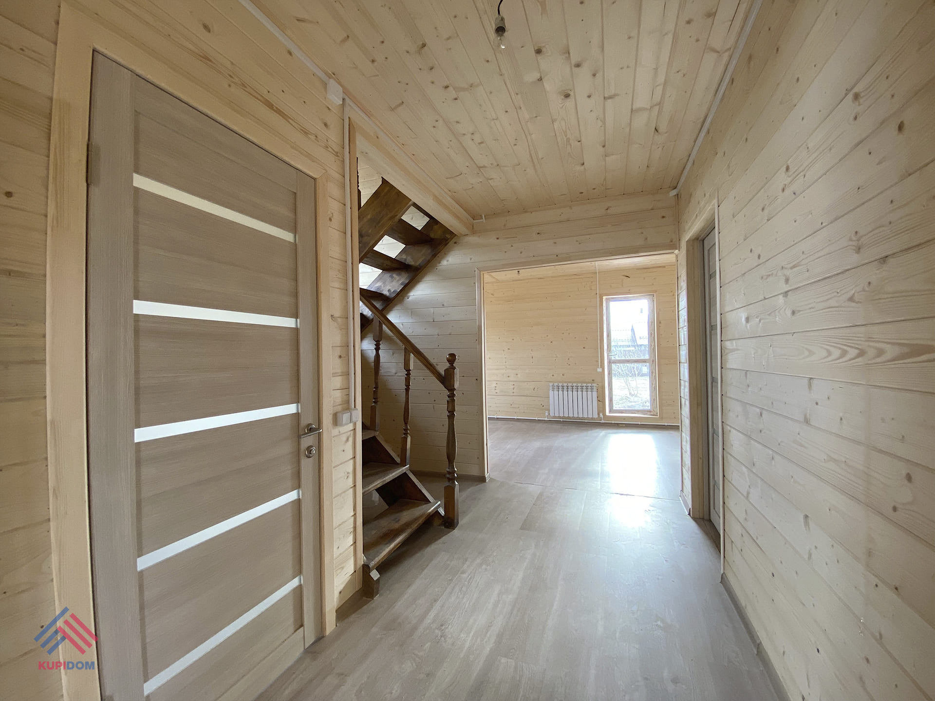 1 этаж: крыльцо-тамбур, прихожая, котельная, столовая - кухонная зона - гостиная, сан.узел, изолированная комната.