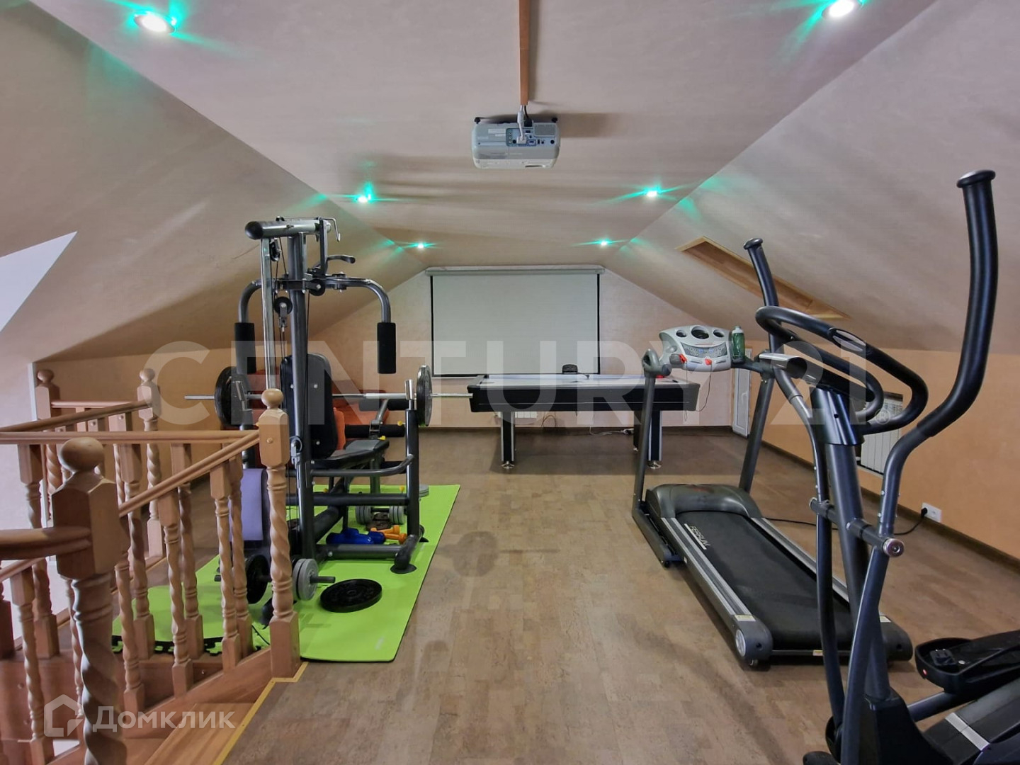 Планировка первого этажа: кухня-гостиная, бойлерная, совмещенный с/у, гардеробная, прихожая, кладовая. На втором этаже расположены четыре комнаты, просторный совмещенный с/у. На третьем (мансардном) этаже - зона отдыха и тренажерный зал. В доме имеется оборудованный подвал.