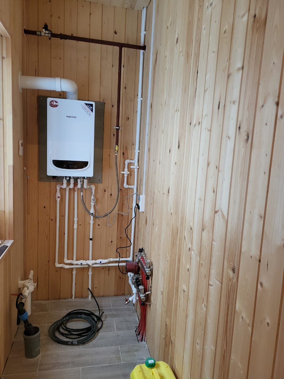 Коммуникации: электричество 15 квт, газ магистральный, 1 этаж теплые водяные полы, 2 этаж радиаторы, водоснабжение центральное, горячее и холодное водоснабжение, септик Топаз.