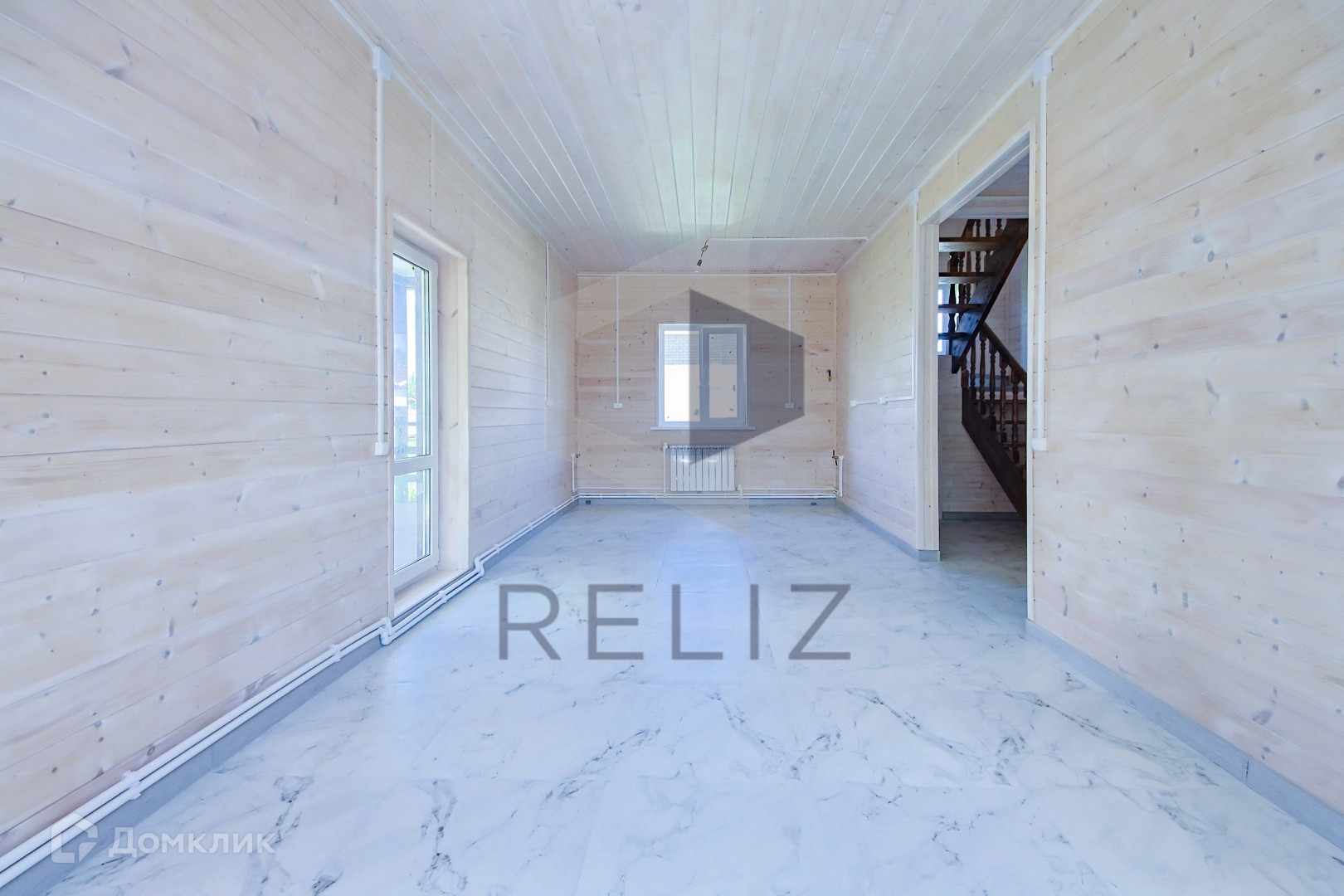 - Внутренняя отделка дома: имитация бруса. Пол – ламинат и плитка. Окна ПВХ