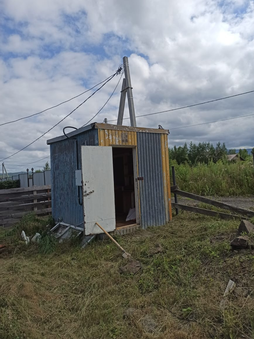 На участке есть киоск, закрывается под замок, для удобства хранения и пользования, в него заведён свет, розетки на 220 В и 380 В.
