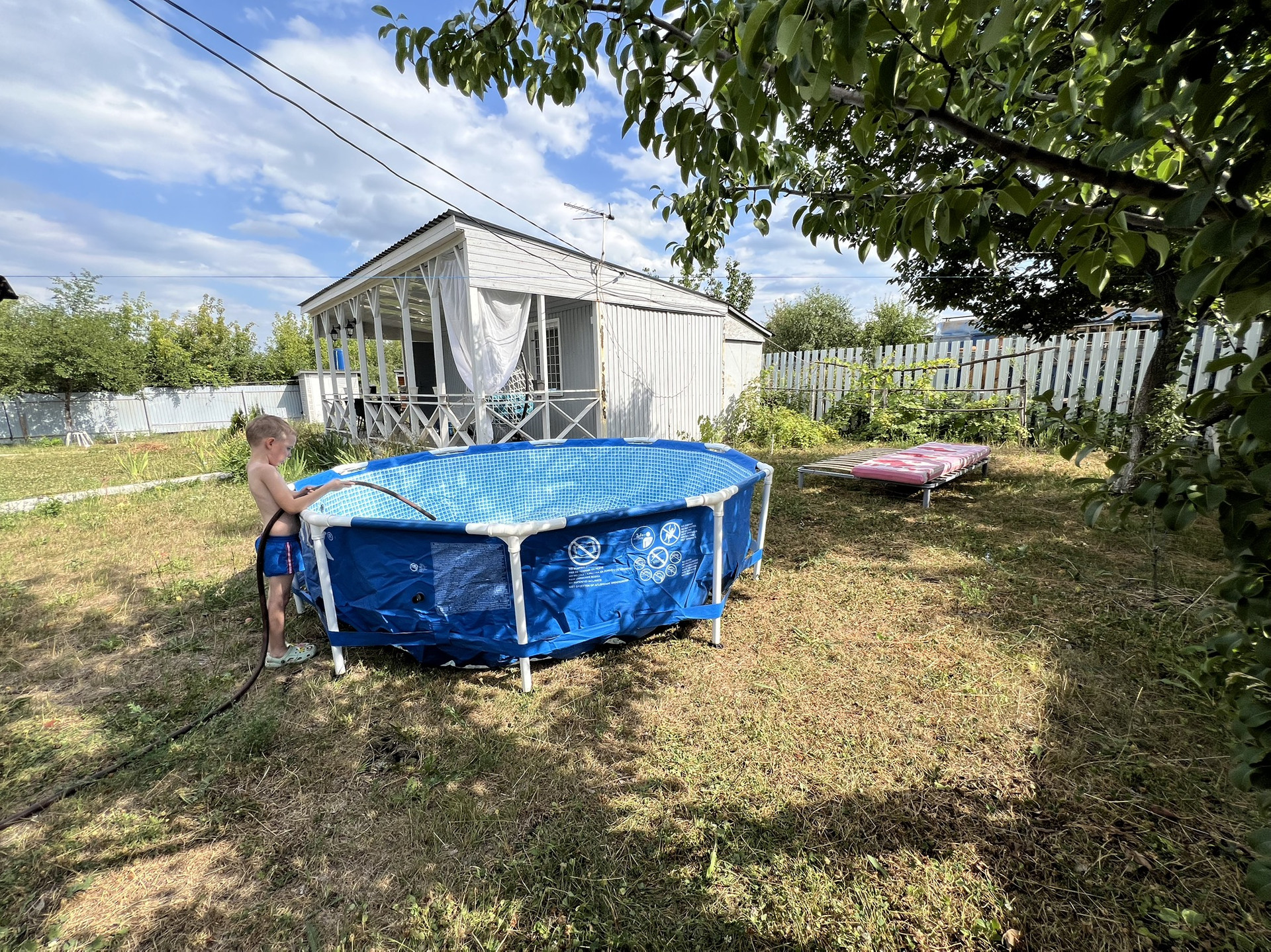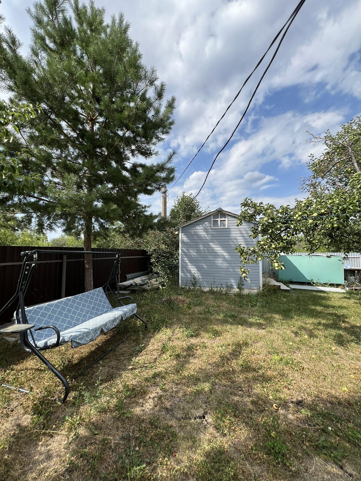 Участок ровный, выстилан газоном - много свободного пространства.