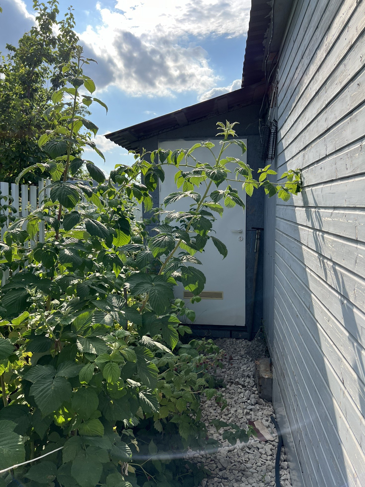 Также растут клубника, малина, яблони, груша, вишня, облепиха, слива. Хвойные - сосна.