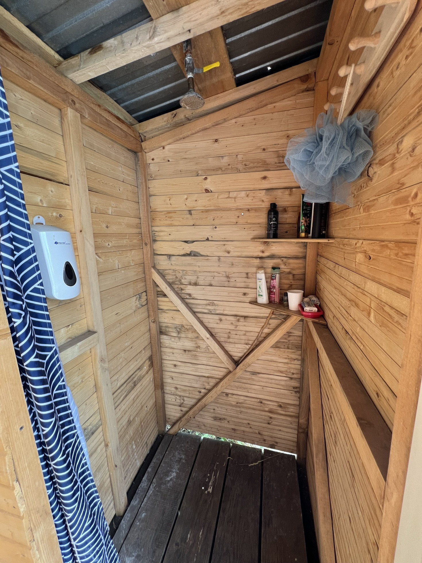 Есть отдельный туалет и душевая с прихожей. Над душем бочка с электрическим подогревом (тэном)