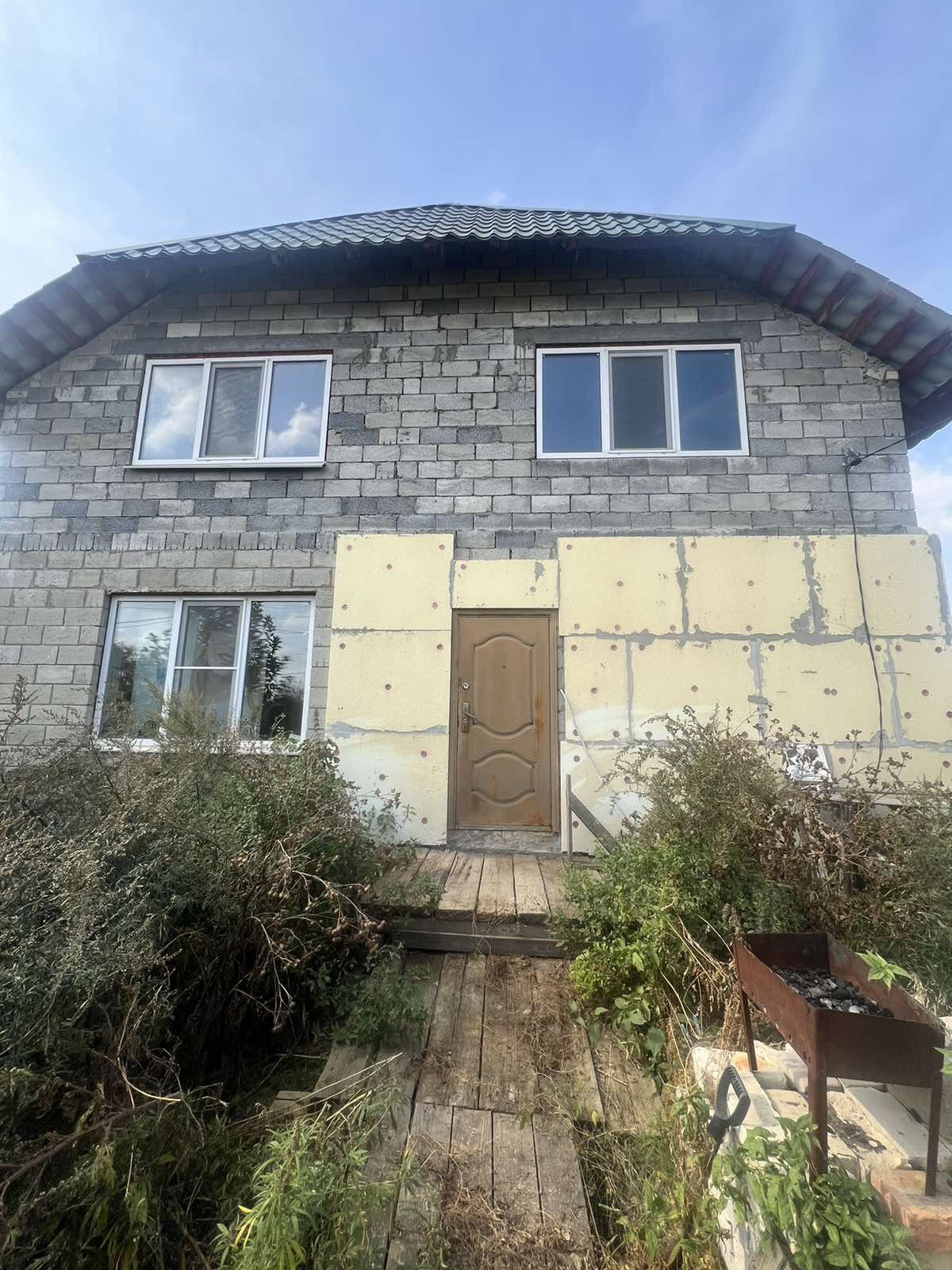 Коробка дома целевом достроена, установлены пластиковые окна, теплый пол, крыша металочерепица. Сам дом построен из газоблоков.