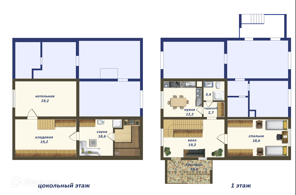 Цокольный этаж: 3 подсобных помещения, под