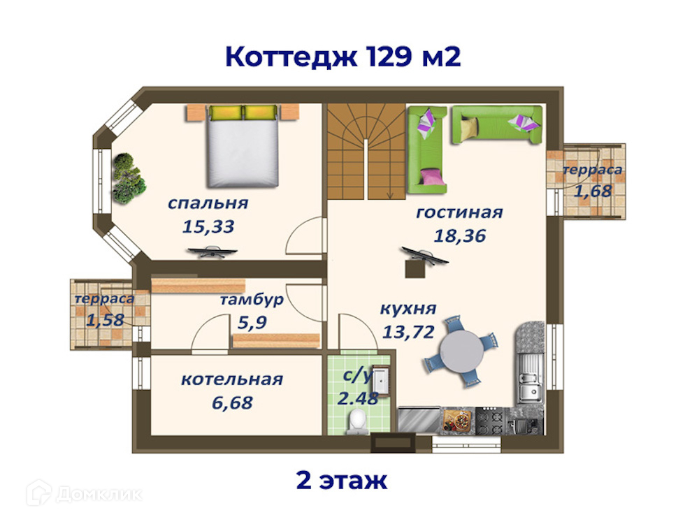 Общая площадь 129 м2