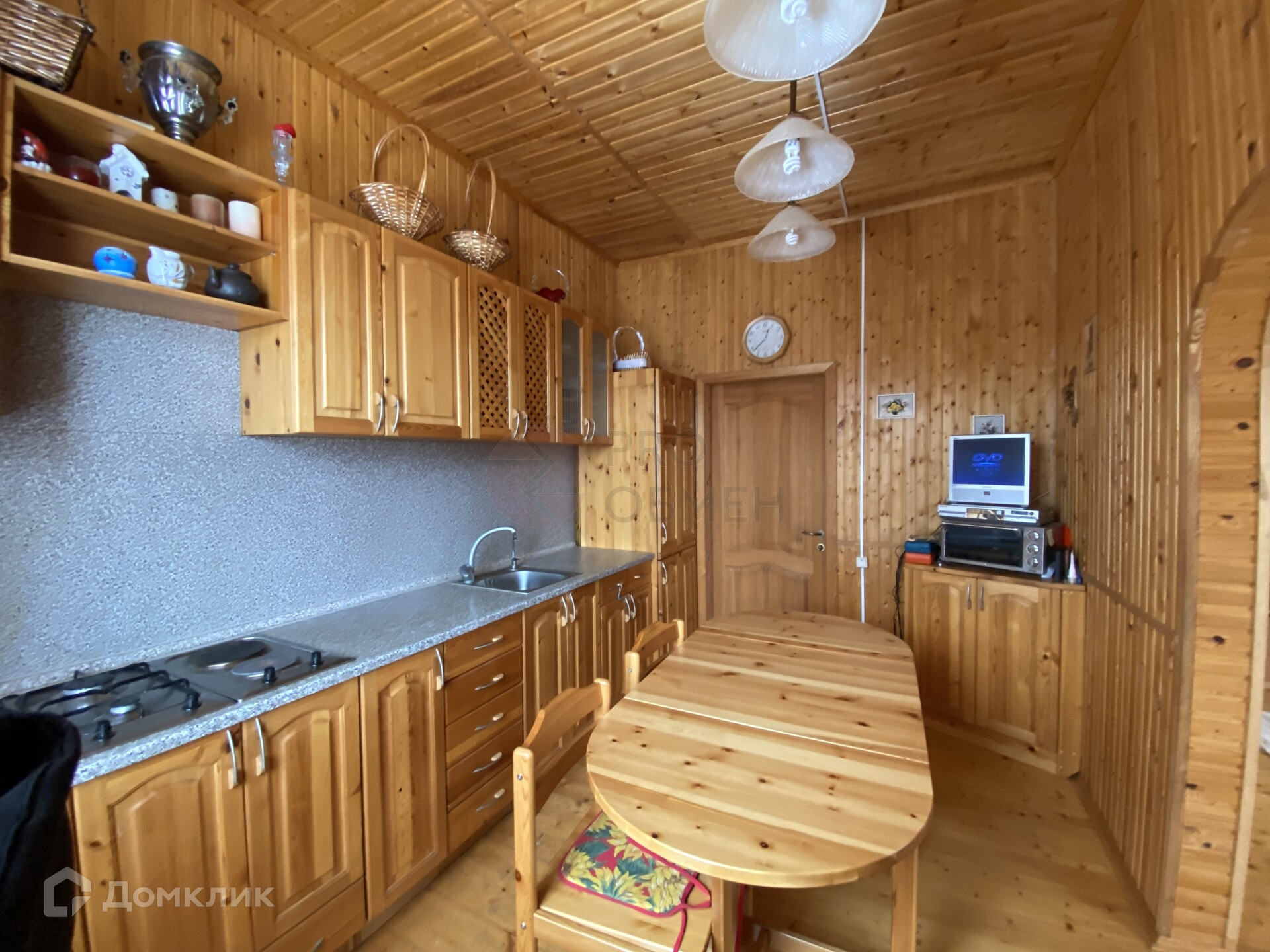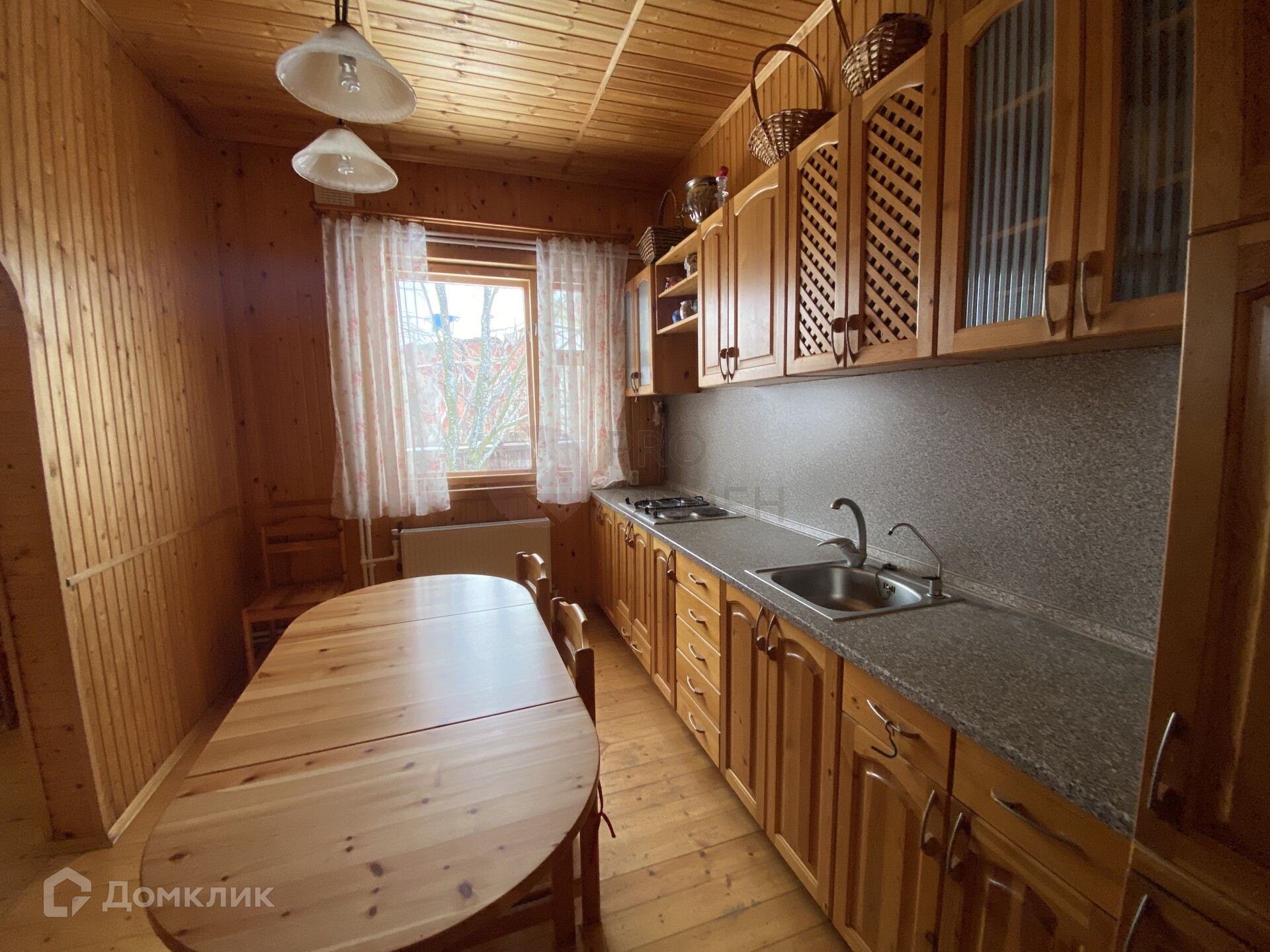 Дом из бруса, облицован сайдингом, расположен на участке 17,5 соток. Общая площадь дома 165 кв.м. На первом этаже располагается кухня, гостиная, 2 спальни, санузел, просторный холл, закрытая веранда. На втором этаже 4 спальни, просторный холл, кладовые помещения. Внутри дом полностью отделан вагонкой, высокие потолки 3 метра.