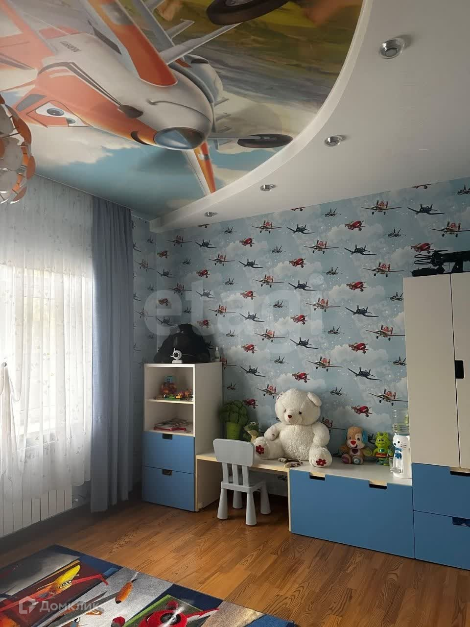 Трехэтажный дом, на первом кухня столовая, гостевой санузел, гостевая спальня, игровая с возможностью выхода на участок. На втором этаже хозяйская большая спальня с гардеробной комнатой санузлом и сауной, две детские комнаты, кинотеатр и спортивный зал. На третьем этаже большая игровая зона, и еще одна комната, в хозяйской спальне вся мебель произведена из дуба, а так же кухня, прихожая и полы.