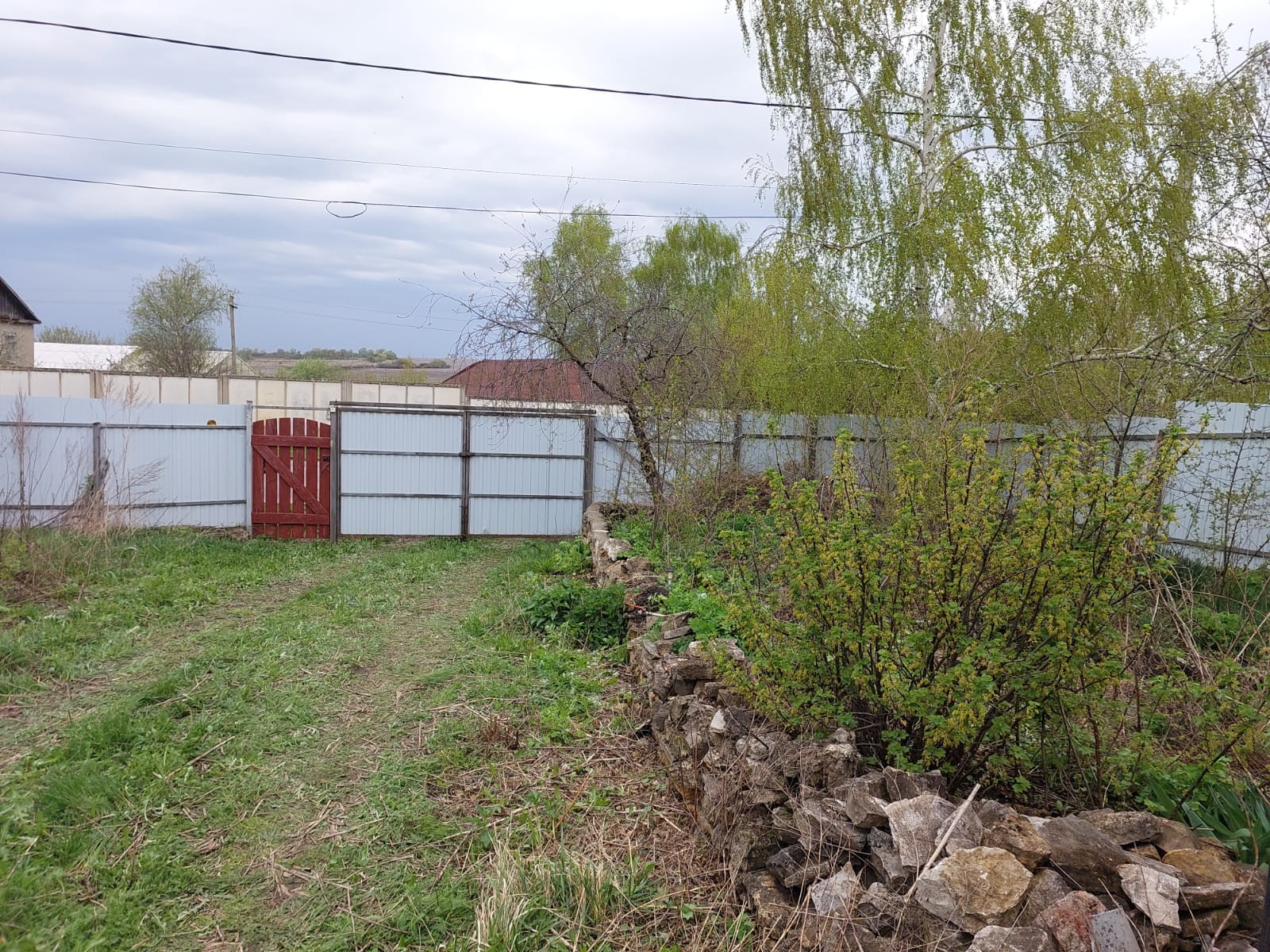 Территория огорожена забором.