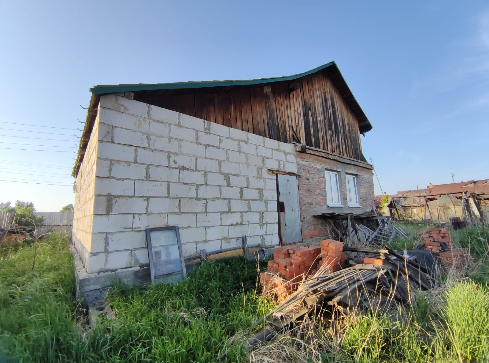 Продаю земельный участок площадью 2049 кв.м, с категорией земель - земли населённых пунктов, вид разрешённого использования - для ведения личного подсобного хозяйства. На земельном участке расположен жилой дом площадью 74.3 кв.м, в 2 этажа (1 этаж - из кирпичей, есть печь, 2 этаж - деревянный), есть большой гараж из пеноблоков. В доме поставлены евроокна, крыша - металлочерепица. На участке деревья, кусты. Есть электричество. Газ - проведён по улице.